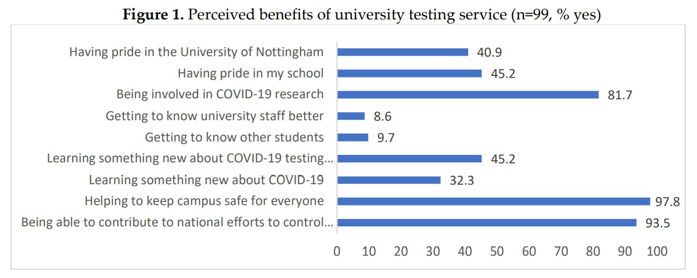Student characteristics weren’t a factor in predicting participation here either, but those who opted not to take part in the pilot programme reported a lower perceived risk of Covid-19 than pilot participants pre-(July) and post-pilot (October) compared with those who had taken part. It would be fascinating for obvious reasons to see if similar reasons were there in Nottingham’s roll out this last term and across the UK in this pre-Christmas “exit testing” project we have on.