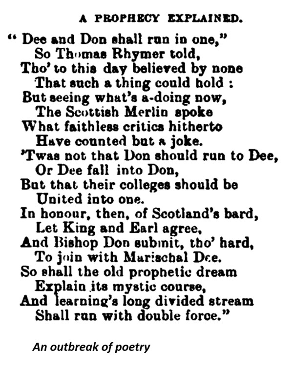 Further attempts were made to unite the two colleges in 1756, 1770 and in the 1780s. This latter became a matter of some local controversy. There were blasts and counterblasts in the local newspaper, the Aberdeen Press and Journal. Here’s a flavour, from a letter published on Monday 31 July 1876: