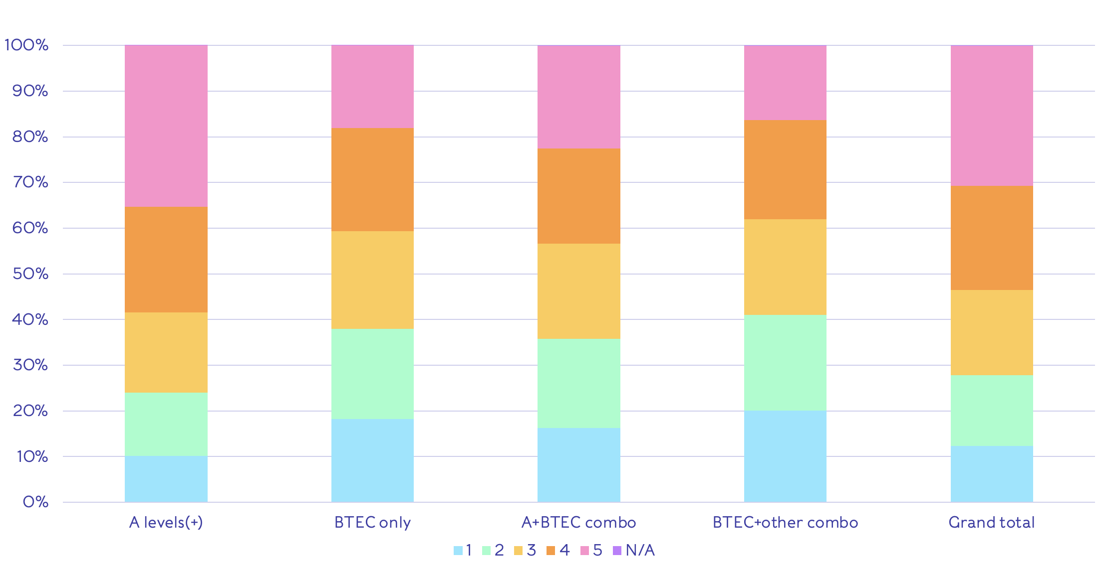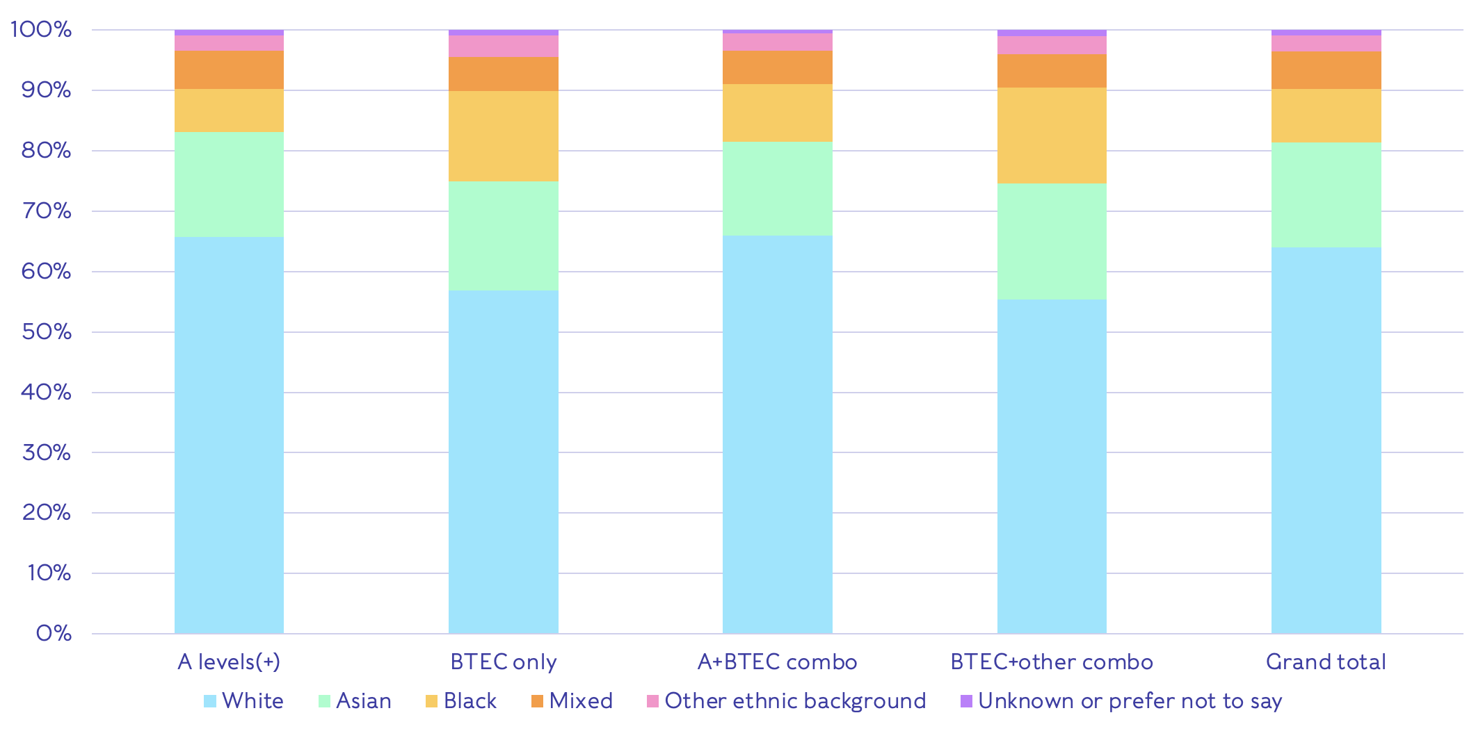 The BTEC-only cohort has significantly the highest ethnic diversity.