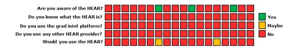 Only three employers had heard of the Higher Education Achievement Report (HEAR), but none knew what it was, and only two would consider using it provided research was available that demonstrated it selected for higher quality candidates (Figure 4). This is the method of volunteer recognition currently used by Northumbria University.