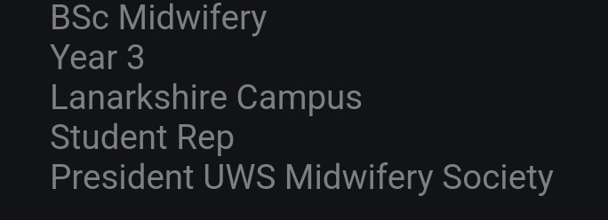 They’ve taken part in conferences on Midwifery and won awards. The President was proud of a low attrition rate – but still wants it to be lower. They talked a lot about belonging. They want to be “students voice”.