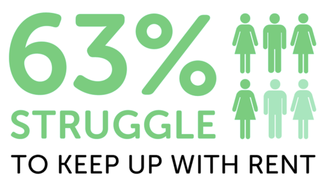 It’s upsetting but unfortunately not surprising that there has been an increase in the proportion of students struggling with rent. In the 2022 accommodation survey, 53% said they struggled. In the 2023 survey, this has increased to 63%.