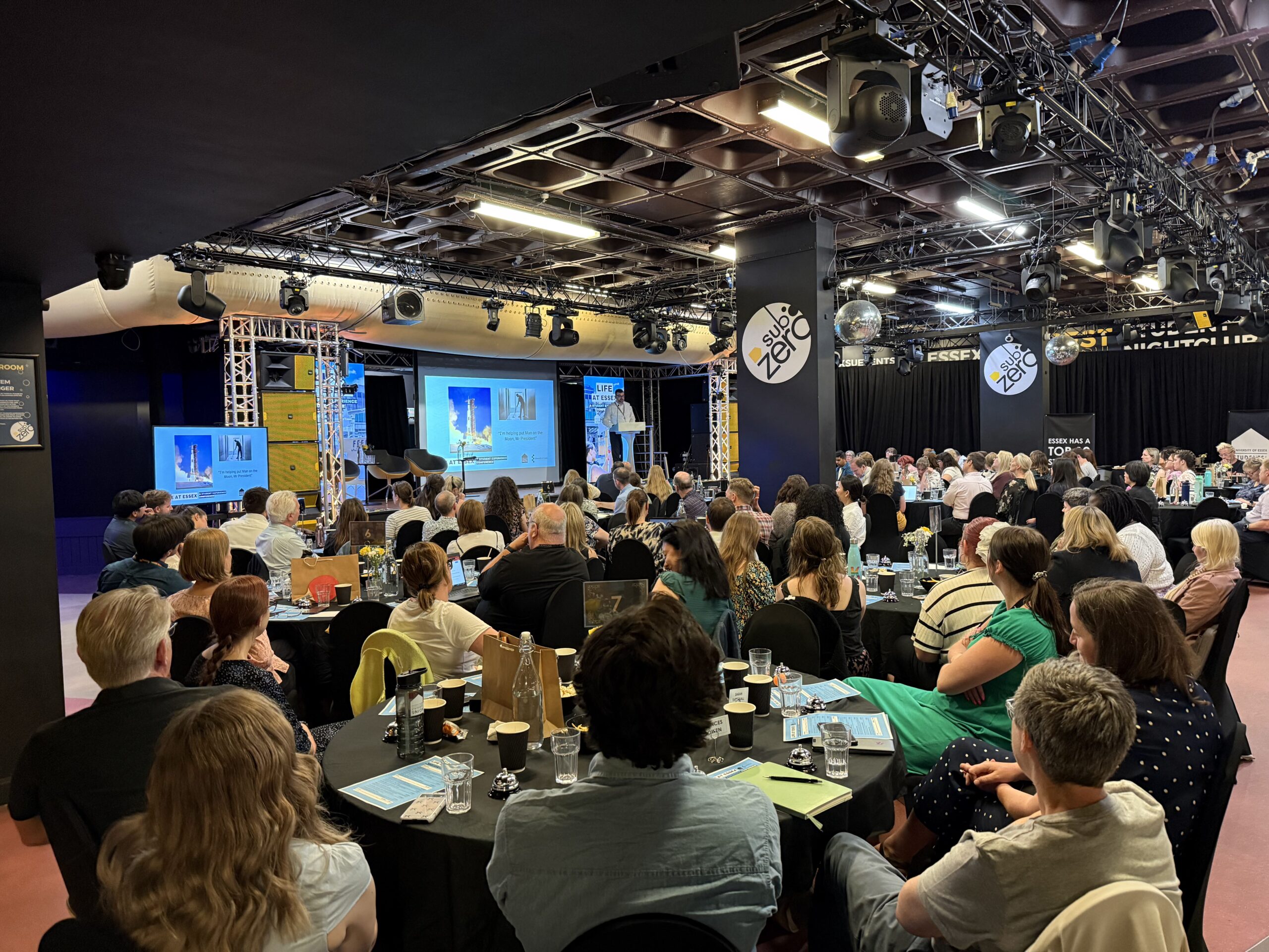 We staged the conference in our student nightclub, Sub Zero, marking a shift to a different type of venue that most staff hadn’t previously visited, rather than the usual lecture theatre spaces.
