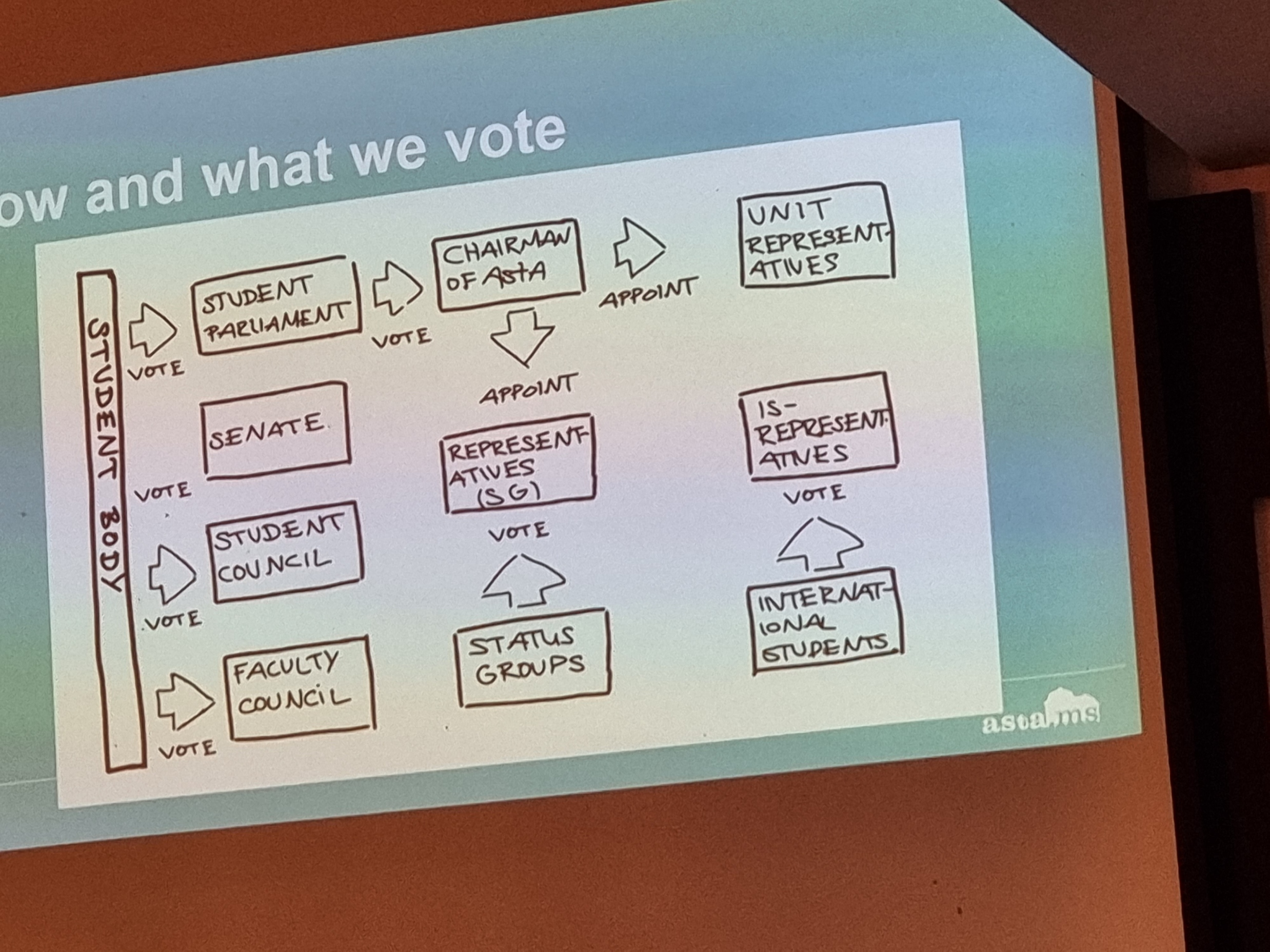 Separately at each university there is then a Allgemeiner Studierendenausschuss (AStA) – that roughly translates as General Students’ Committee, but for simplicity it’s the student representative body in each university.