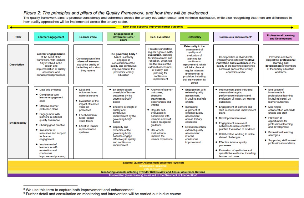 In due course we will need to determine whether or not we should formally designate a quality body to assess higher education. Work on this will be carried out to inform the next cycle of external quality assessments. We will also consider whether to adopt a common cycle length for the assessment of all tertiary education.