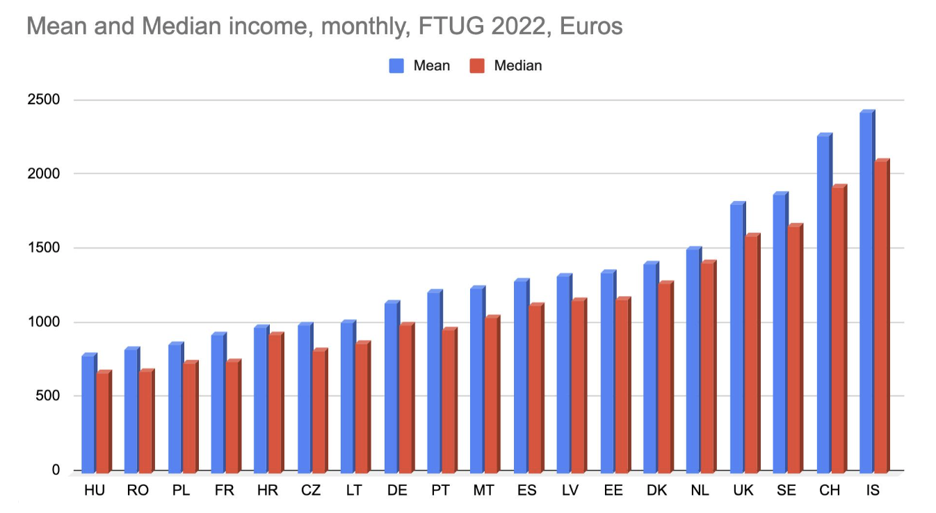 What about comparisons? By European standards, our core system of maintenance looks fairly generous – in this comparison of monthly student incomes via Eurostudent, for example, we’re not far off top out of 20 countries: