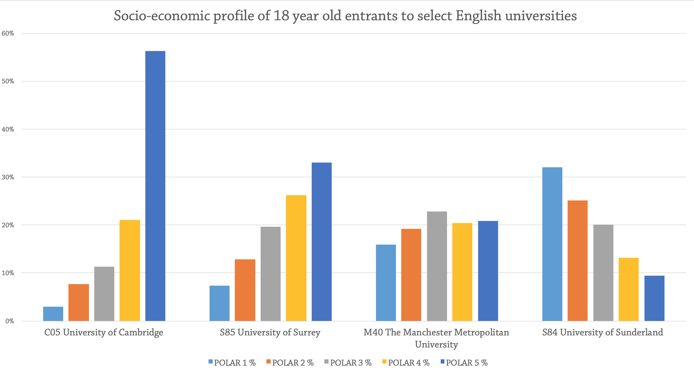 Beneath the headline figures, there is extreme variance in the social profile of different universities, as a result of the various factors described above. Let’s take a look at the below four examples.