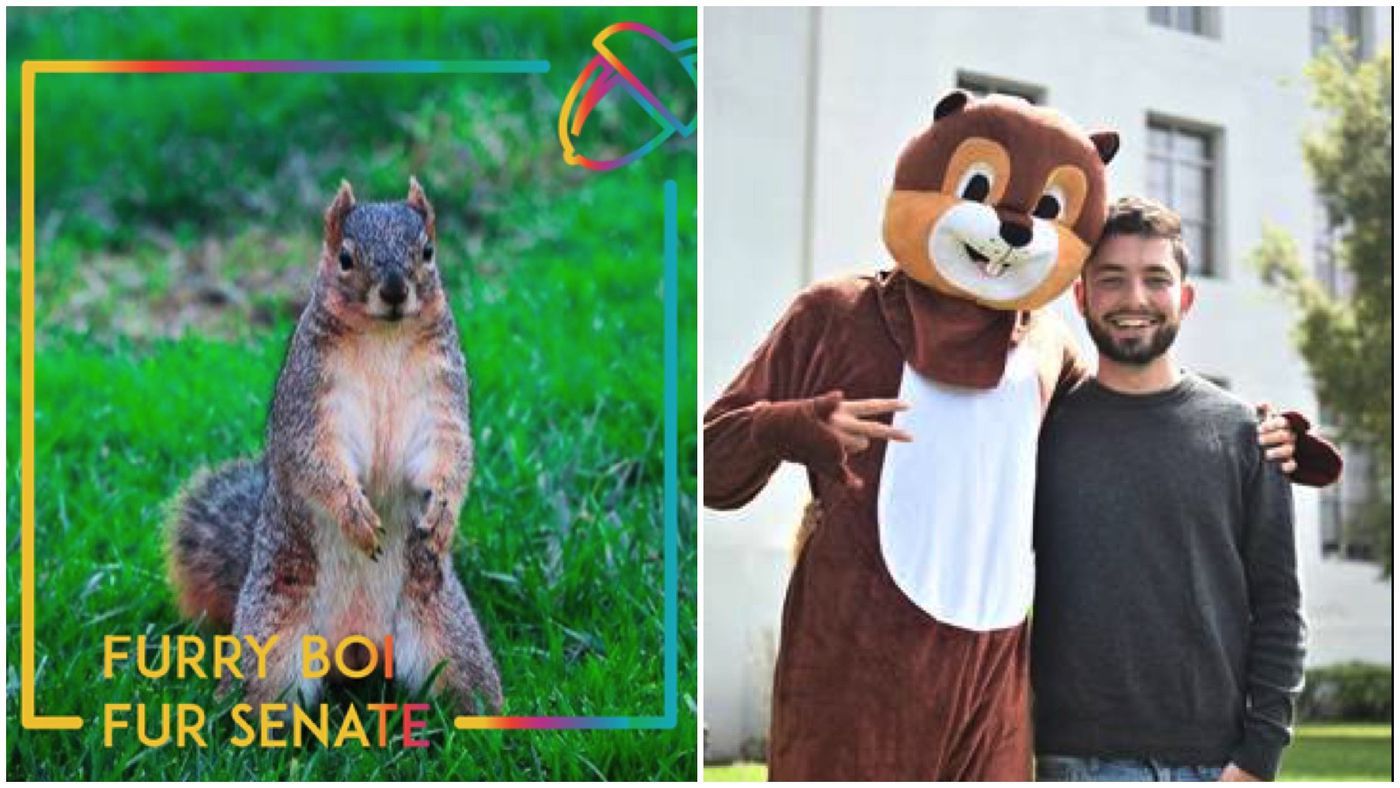 The candidate for a seat in the UC Berkeley student Senate promised safe spaces for squirrels, better access to acorns and support groups for those experiencing habitat loss.