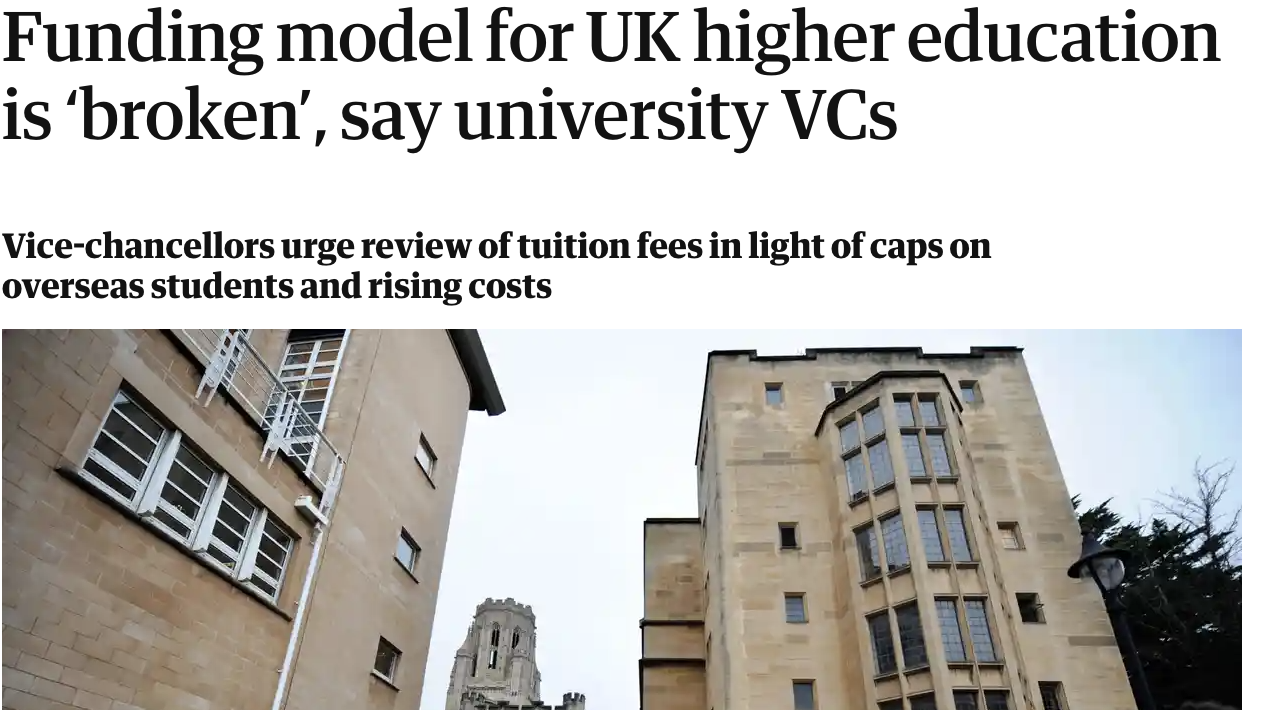 On the front page of the Guardian a couple of weeks ago, vice chancellors warned that the current funding model for UK higher education is “broken”, prompting the Department for Education in England to point out that universities are independent from government: