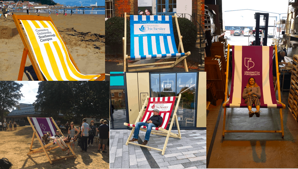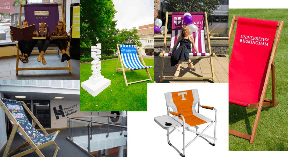 Highly mobile, eminently instagrammable, seaside connotations, family holiday recollections, nostalgic overtones – these deckchairs large and small offer everything to campus branding efforts as well as being extremely practical.