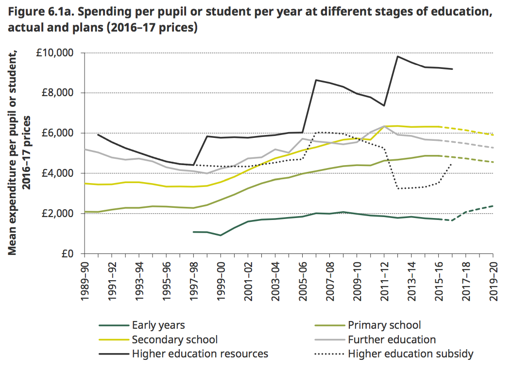 Source: IFS, Long-run comparisons of spending per pupil across different stages of education