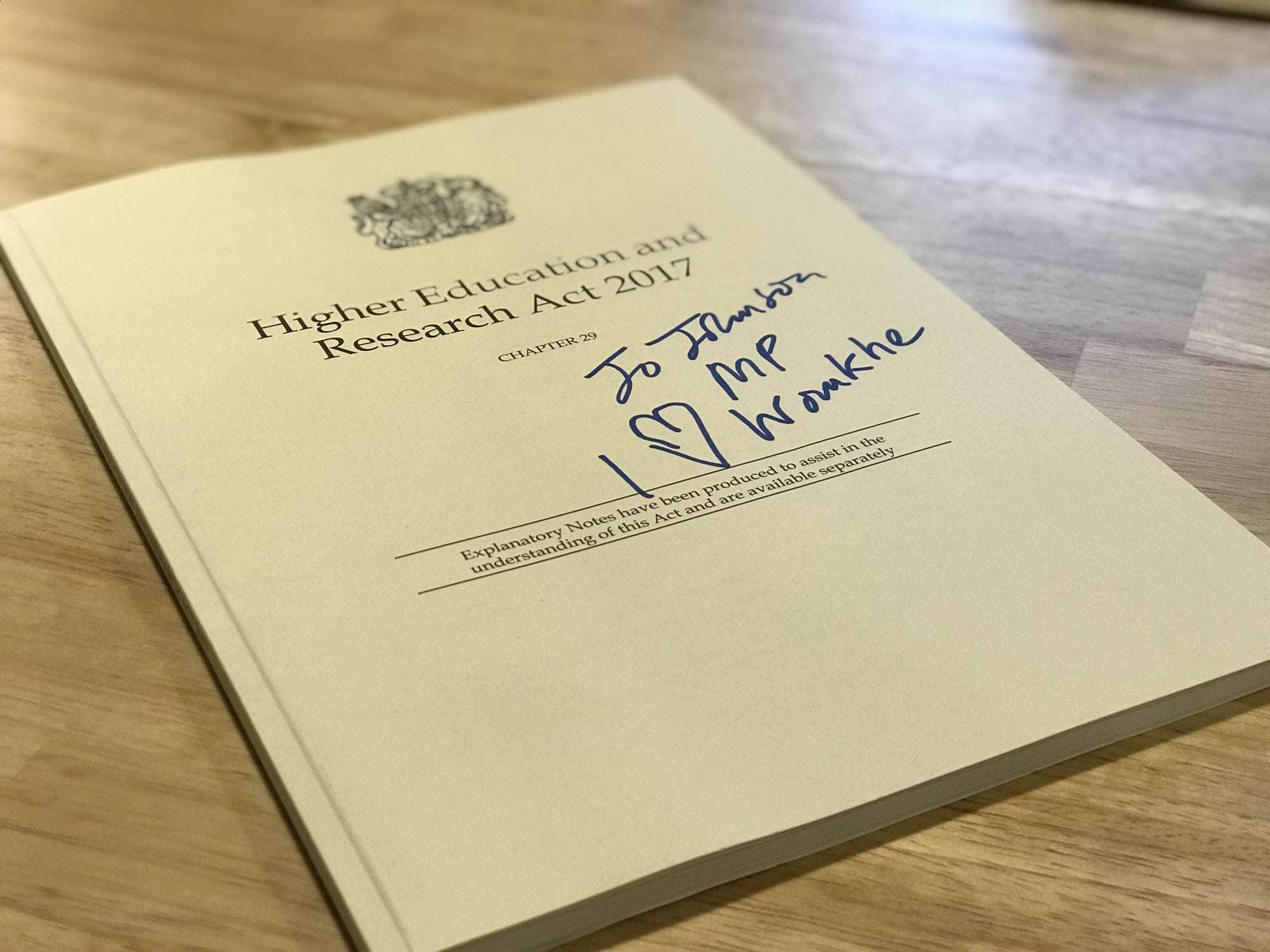 All shortlistable ideas will be sent to Alison Johns for her consideration. And as if that wasn’t enough, the best entry – the National Teaching Fellow of nomenclature, the Athena Swan Gold of titles – will win a fabulous prize: a copy of the 2017 Higher Education and Research Act, signed by Jo Johnson himself.
