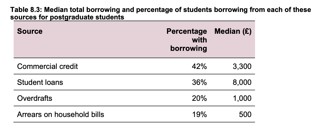 The situation facing postgraduates is especially dispiriting. On the debt thing, 42 per cent had taken out commercial loans, one in five were in an overdraft and a similar number in arrears on their household bills.