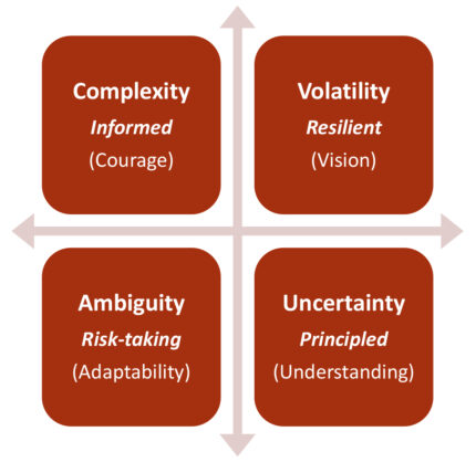 The US military first introduced the acronym VUCA (Volatile, Uncertain, Complex, Ambiguous) in 1987 to help define the post-Cold War global security environment. Since the early noughties, it has been applied increasingly to strategic thinking and risk management across a wide range of industries, from commerce to education.