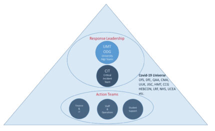At Northampton we have used components of the VUCA model to underpin our rapid response to Covid-19. Instead of the top-down Gold-Silver-Bronze command structure we have restructured around the concept of a Network of Teams. This problem-solving response confers authority and decision making across a distributed but interconnected network, following a commonly agreed set of priorities.
