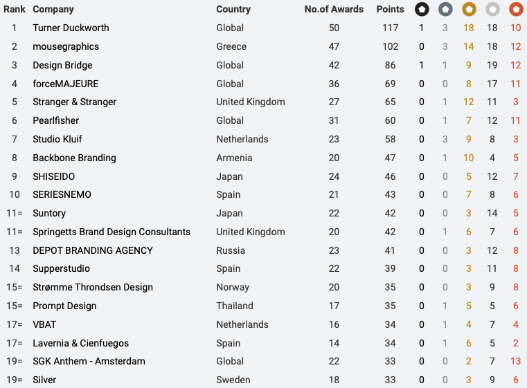 The professional and student league tables are updated each year, to reflect the best creative minds in packaging design, and are based on the winning entries from the Pentawards competition. Year after year, the quality and variety of the entries has grown, making that top spot more and more difficult to reach.