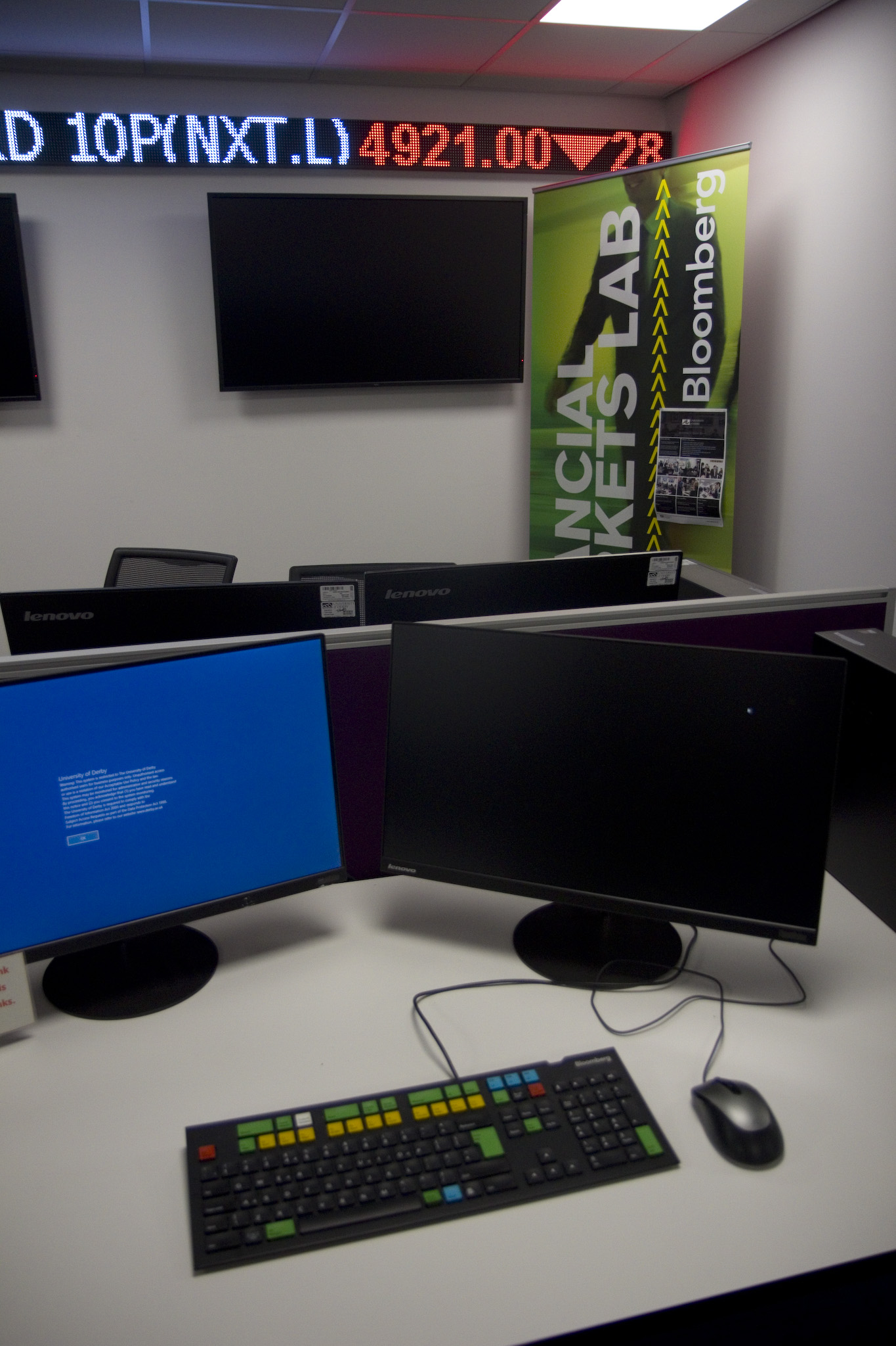 The financial markets lab, sponsored by Bloomberg, looks like a typical City office with multiple screens, colourful trading keyboards and ticker displays – teaching successive cohorts of students how to trade stocks and shares. I wonder how provision will evolve given this is one of those careers often listed as under direct threat from artificial intelligence (AI).