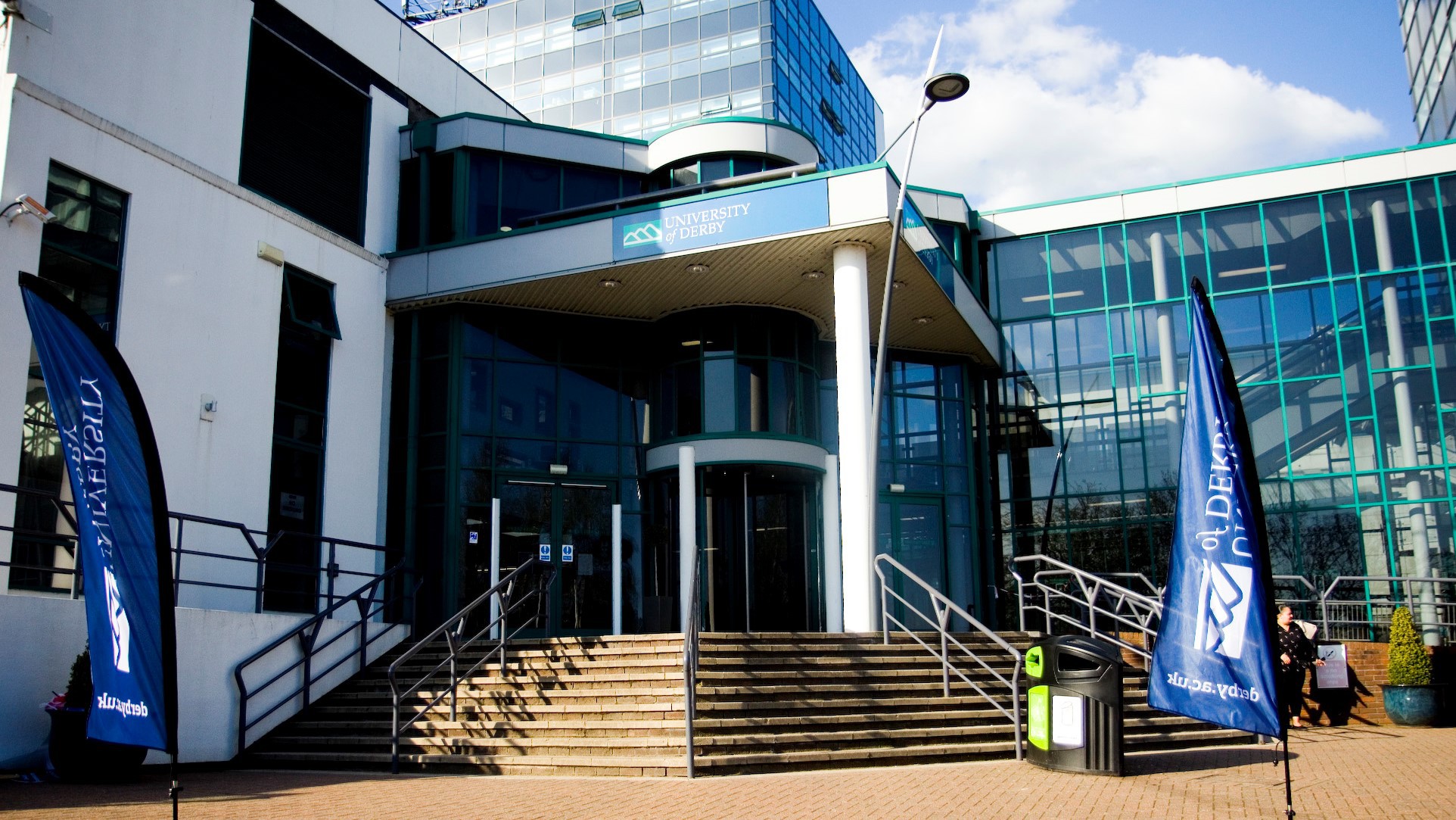 In addition to buildings in Derby, Buxton and Chesterfield, the main Kedleston Road campus sits on a hill, just North of Derby. It’s a modern glass and steel complex, looking down over sports grounds and Markeaton Park with its pretty lake.