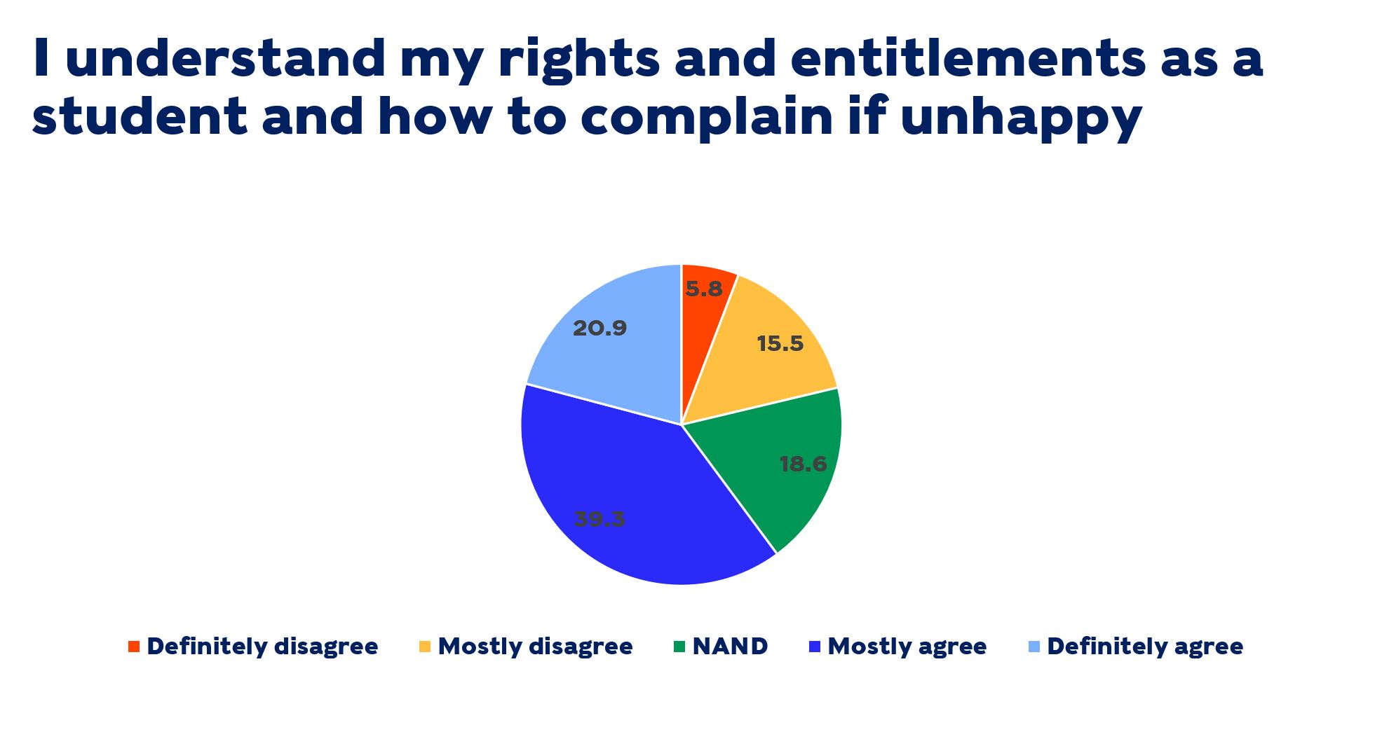 In the qualitative feedback we explored student perceptions in this area of rights and entitlements.