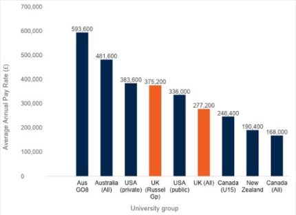 While it may be difficult to draw too many conclusions from this data, the surprising element that comes out is that the UK maybe doesn’t “overpay” its most senior executives relative to others. It is comparable to pay levels for similar roles in Canada and the USA. The anomalies here are the Australian universities, particularly Group of 8 institutions.