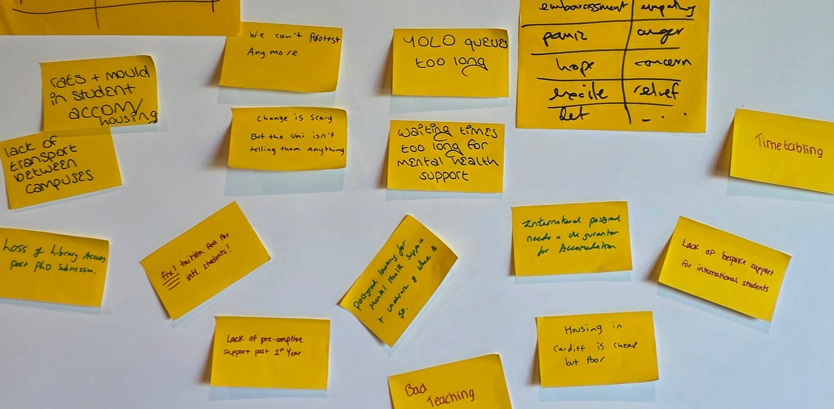 On one visit, we learned of rats living in a wall. On another we were told of a lecturer that “everyone knew” was a “lothario” but nobody knew how to report. International students whose visas were late, admitted weeks after the start of their course only to miss the induction, then be accused of assessment offences they didn’t know were offences, only to have their visa run out before their final work could be marked. No graduate route for them.