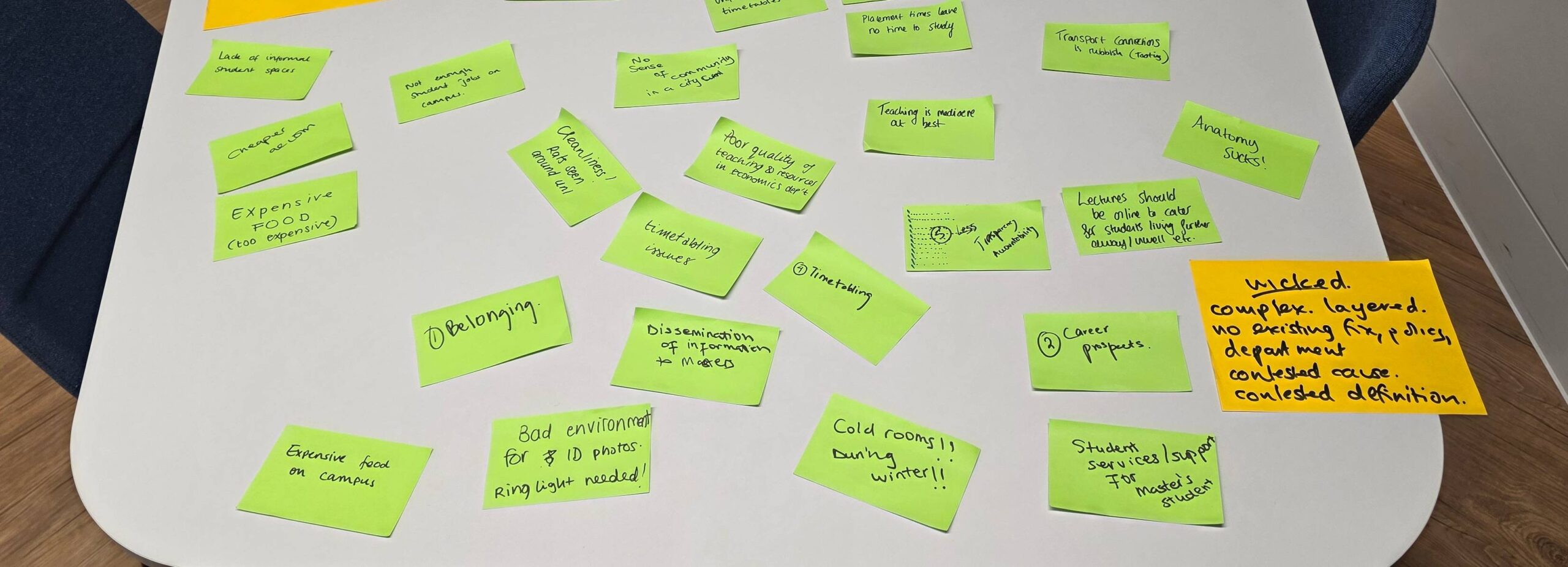 Another set of concerns centres on space, belonging, and wellbeing. Campuses are crowded yet inaccessible – coffee queues too long, study spaces too few, and neurodivergent students locked out of the quiet they need. Student leaders are angry at the dissonance between glossy atriums and the absence of somewhere to heat up food. They’re also clear that wellbeing is not “extra” – but the way staff understand their role in relation to student mental health varies wildly, from proud detachment to amateur counselling.