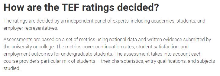 This is probably news to most people (largely because OfS has thus far refused to reveal the Colonel’s secret list of 11 herbs and spices it uses to judge whether someone can pop onto the register or get a condition) but it does raise all sorts of issues. Do international applicants gawping at a TEF medal being thrust in their face by an international recruiter know that the judgement is faulty when it comes to them? We certainly couldn’t find a national body attempting to explain the TEF that makes clear that international students are missing from most of the metrics.