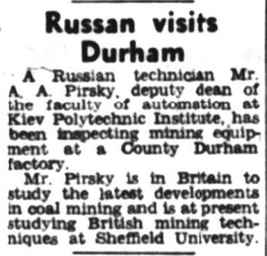 The Institute has left a small mark on the British press as well – here’s a report from the Newcastle Evening Chronicle of 10 March 1965. Almost certainly Mr Pirsky was Ukrainian not Russian, but such distinctions mattered less to us in 1965 than they seem to do today.