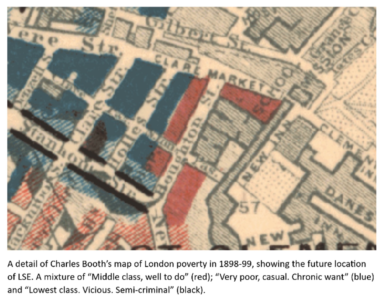 At that time Clare Market and surrounding streets were dense housing, as well as being near the law courts and Lincoln’s Inn. The remodelling of the 1920s which brought Kingsway and Aldwych into being had not yet taken place. But it was a home.