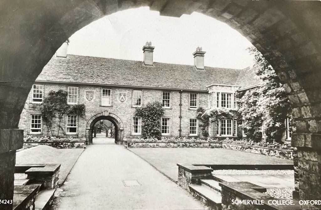 This is not from the #HigherEducationPostcard collection, but from Pamela Marsden, a Somerville alumna and student in the 1960s. While at the college she sent the card to an aunt, and the card is now back once more in her possession. A jolly fine card it is too, and I am grateful to Pamela for allowing me to share it here.