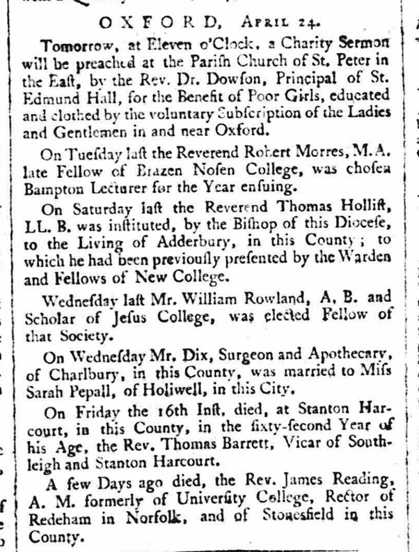 Here’s a nice snippet: an extract from the Oxford Journal of 24 April 1790.