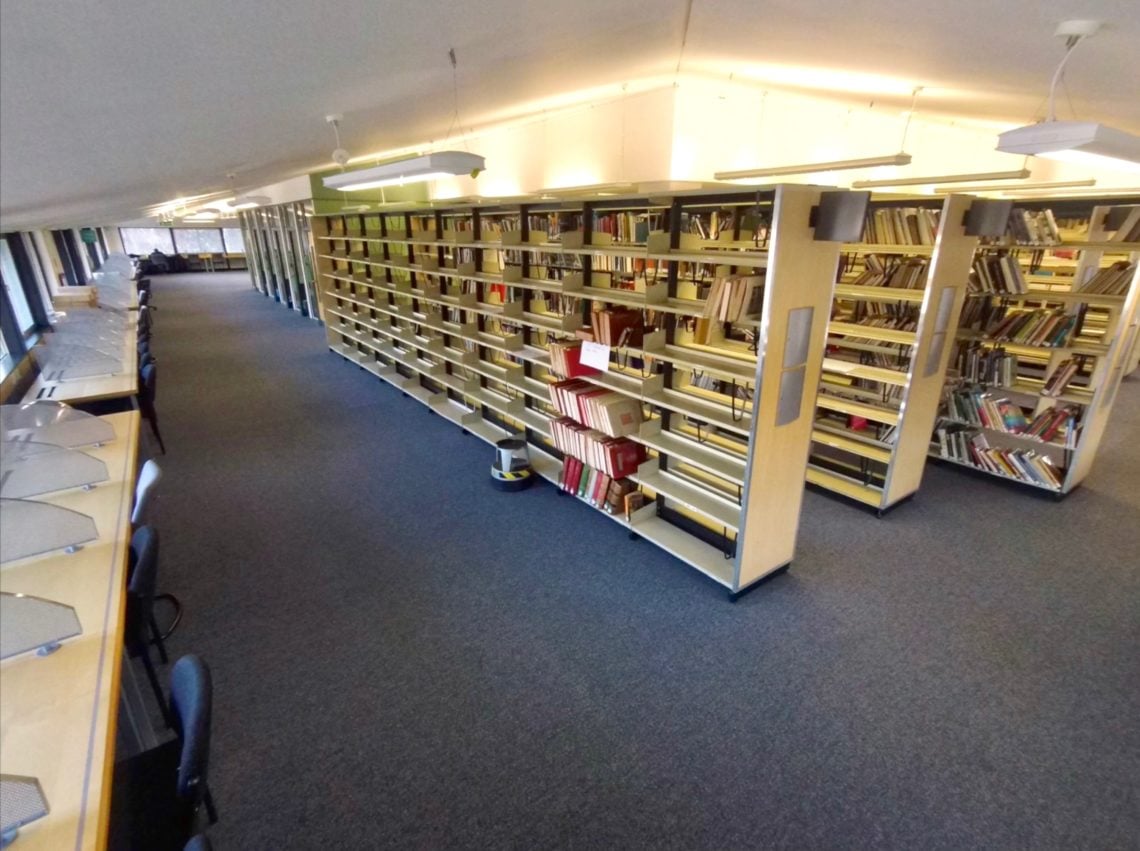 Like atria, social learning spaces only make sense when they are peopled. Like shopping malls, they are dependent for their meaning on footfall and their space is produced by movement, exchange and interaction. They advertise energy and motion. In contrast, the library in the soon-to-be-abandoned campus had a haunted feel suggestive of high streets that have been abandoned in favour of new shopping centres.