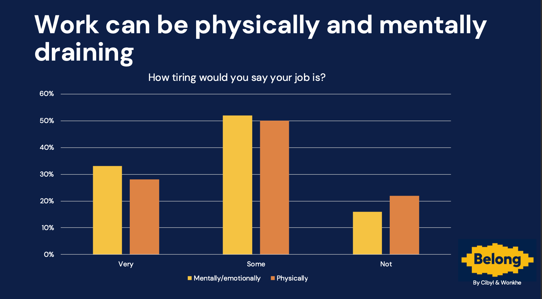 social care taking a particular toll from both perspectives. And the more mentally tiring students said their work was, the worse their mental scores.