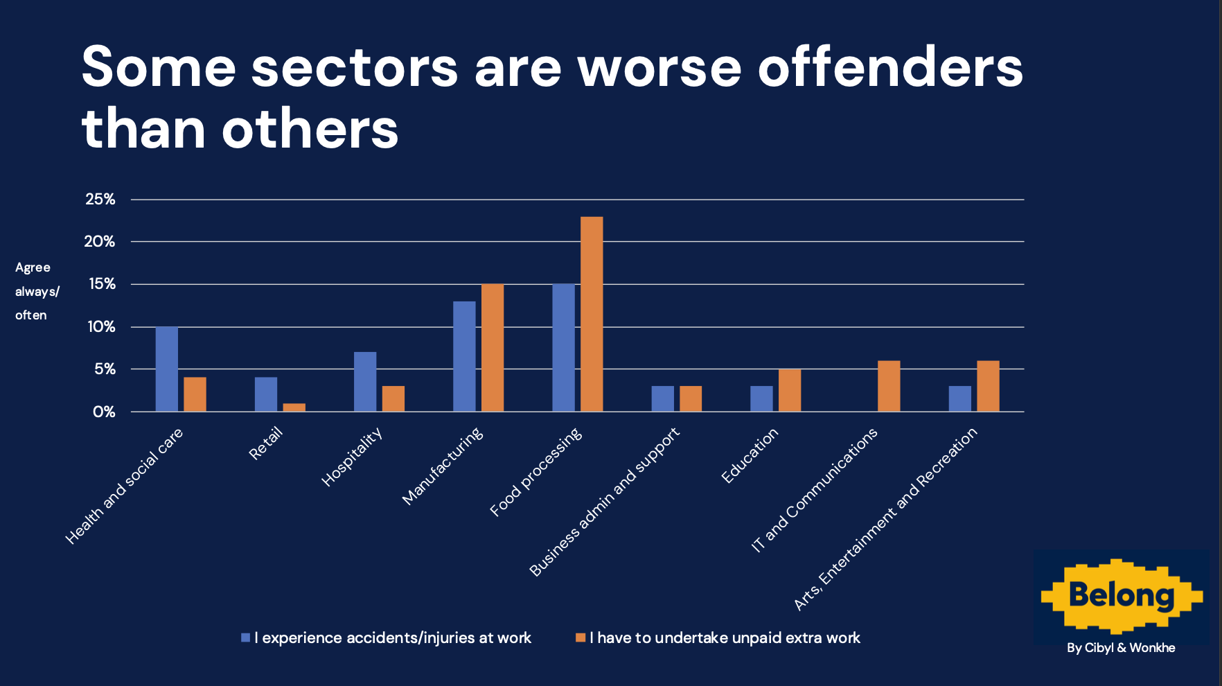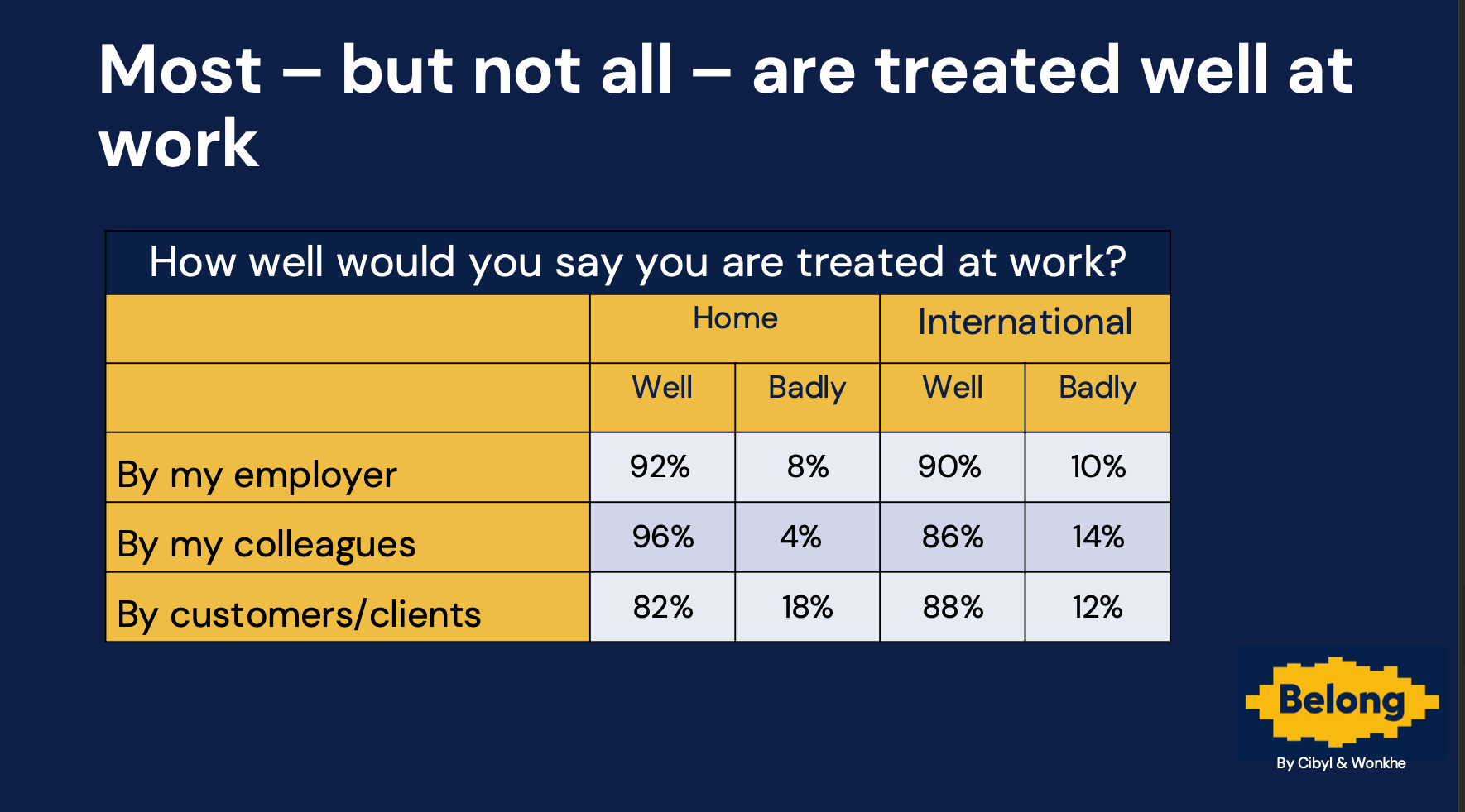 International students’ perceptions suggest that they are more likely to be treated quite badly – a finding we are keen to interrogate further. But more generally, a significant minority face poor treatment from customers or clients – and is usually much harder for those in less secure forms of work to complain about or tackle.