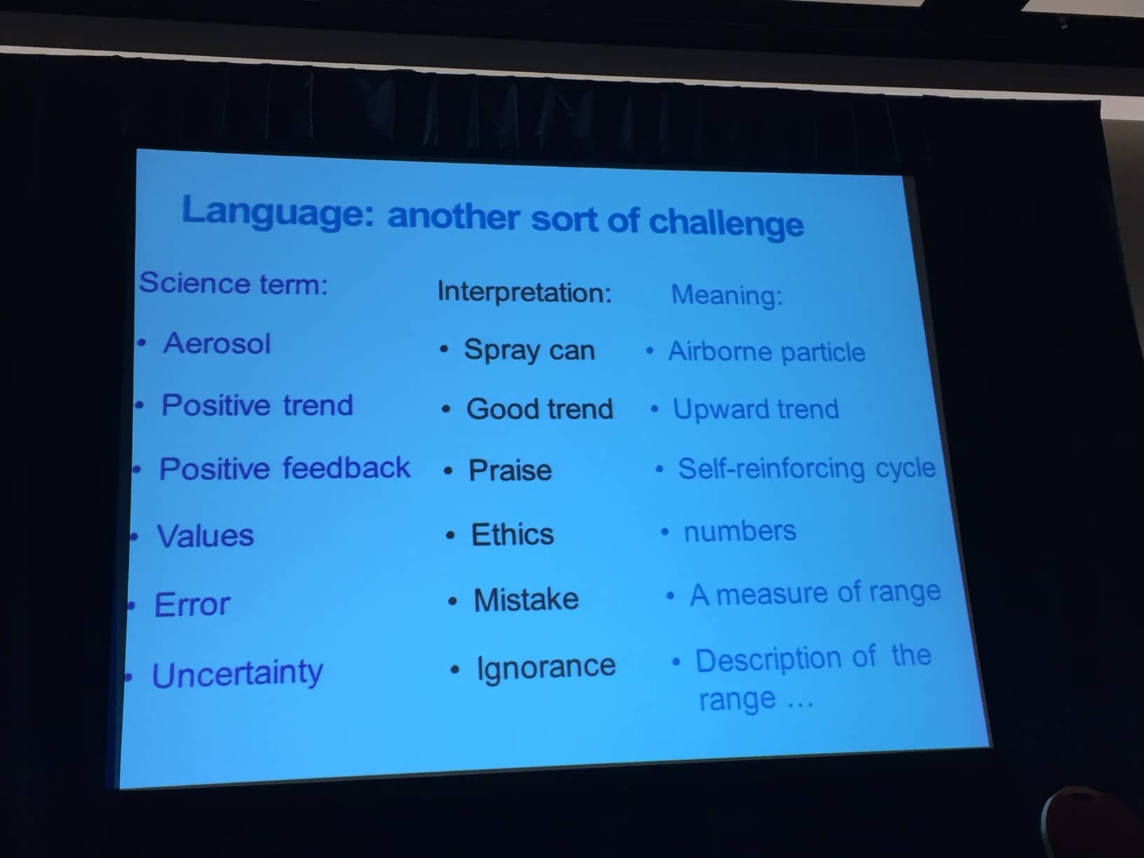 Scientists are still trusted, certainly in comparison to politicians and journalists, and so they have some power and influence, if they know how to use it. Often, language and communication is the ultimate challenge, as the below slide demonstrates…