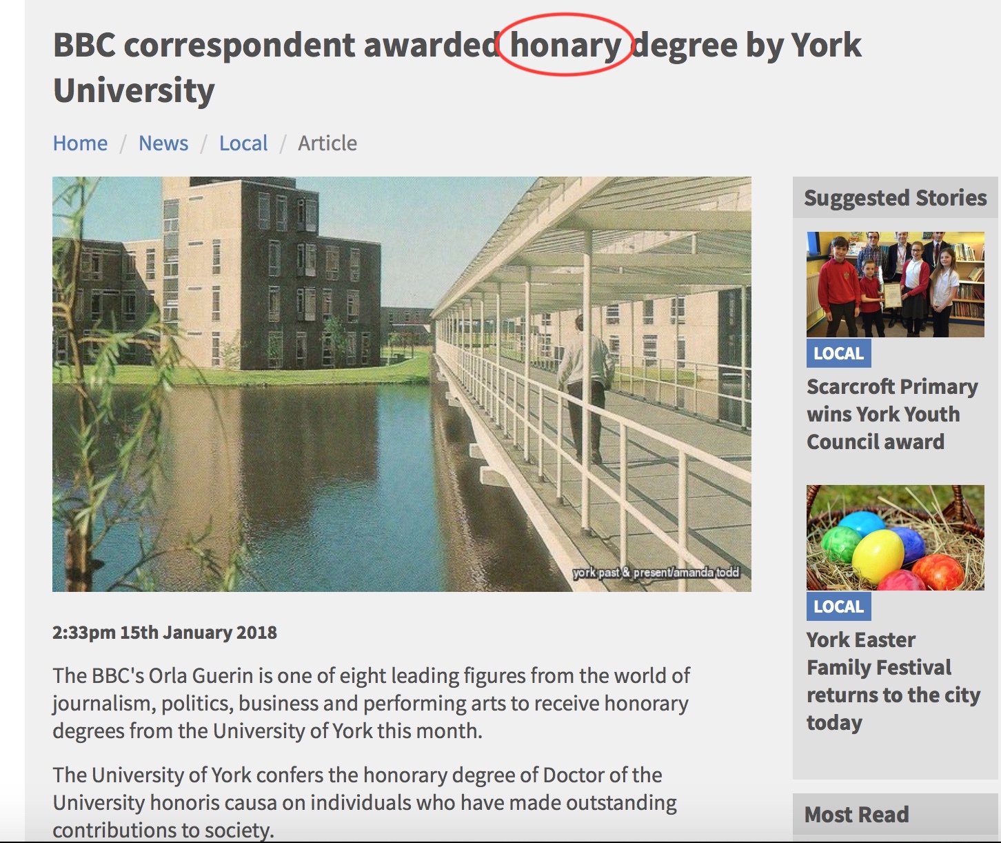 Orla Guerlin, the hugely impressive and exceptionally well travelled BBC correspondent, was awarded an Honorary by the University of York (although Minster FM struggled with the headline) and Tamsin Greig was rather chuffed to be recognised by the University of Birmingham and not just for her work in the Archers: