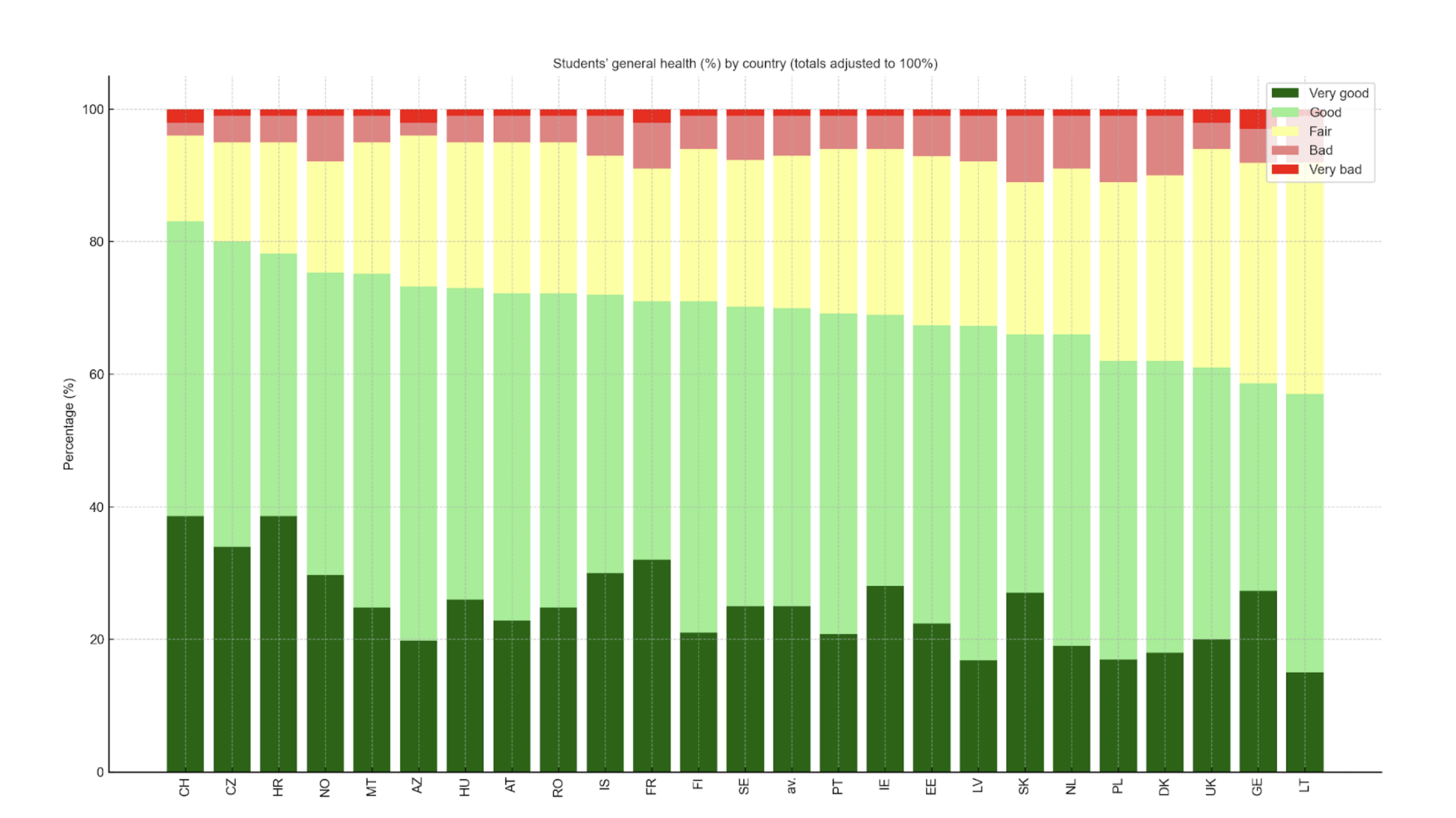 The question asked in Eurostudent is the one we asked in our recent health polling. If we sort by the percentage of students responding positively, we don’t fare well – and the temptation would be to assume that if we can act to improve students’ health, we might ease academic pressures.
