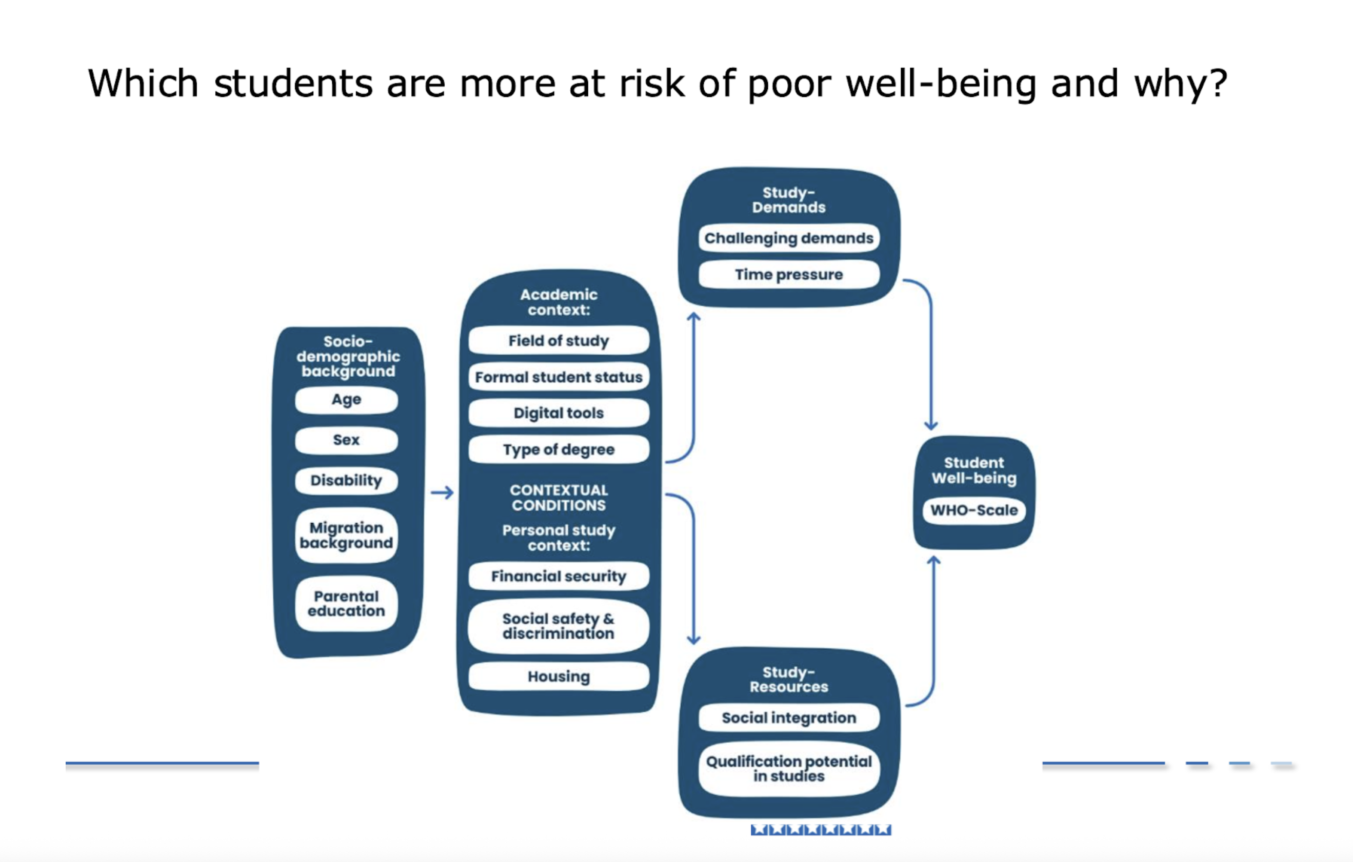 EUROSTUDENT’s model explicitly included age as a socio-demographic factor that shaped a student’s “contextual conditions” – such as their academic and personal study environments – which in turn influenced study demands, access to resources, and ultimately mental health outcomes.