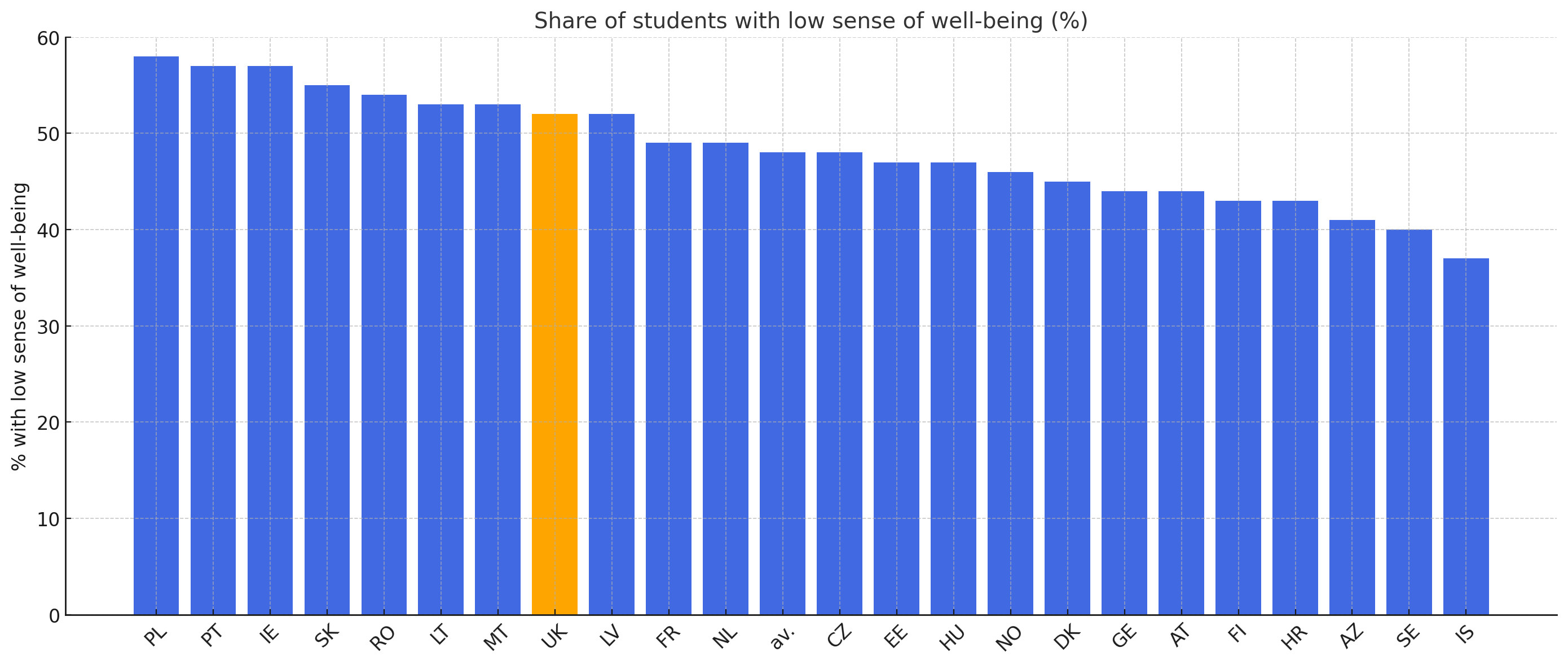 Cibyl’s Mental Health Research is the largest UK study of university students and recent graduates’ mental health – and if we consider its results via the Eurostudent comparison, we are at the upper end of low well-being.