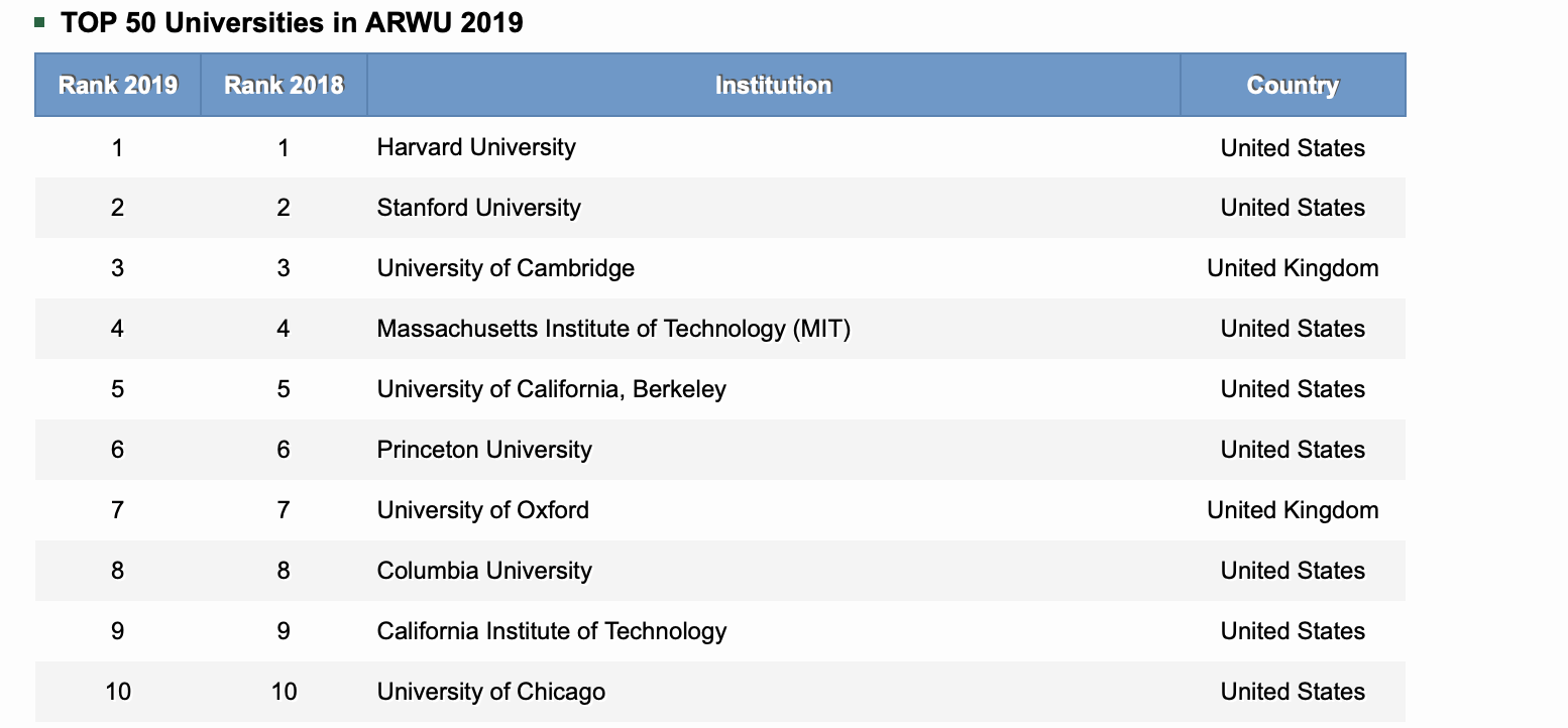 Very stable indeed. Harvard is on top for the 17th year in a row. Congratulations to them.