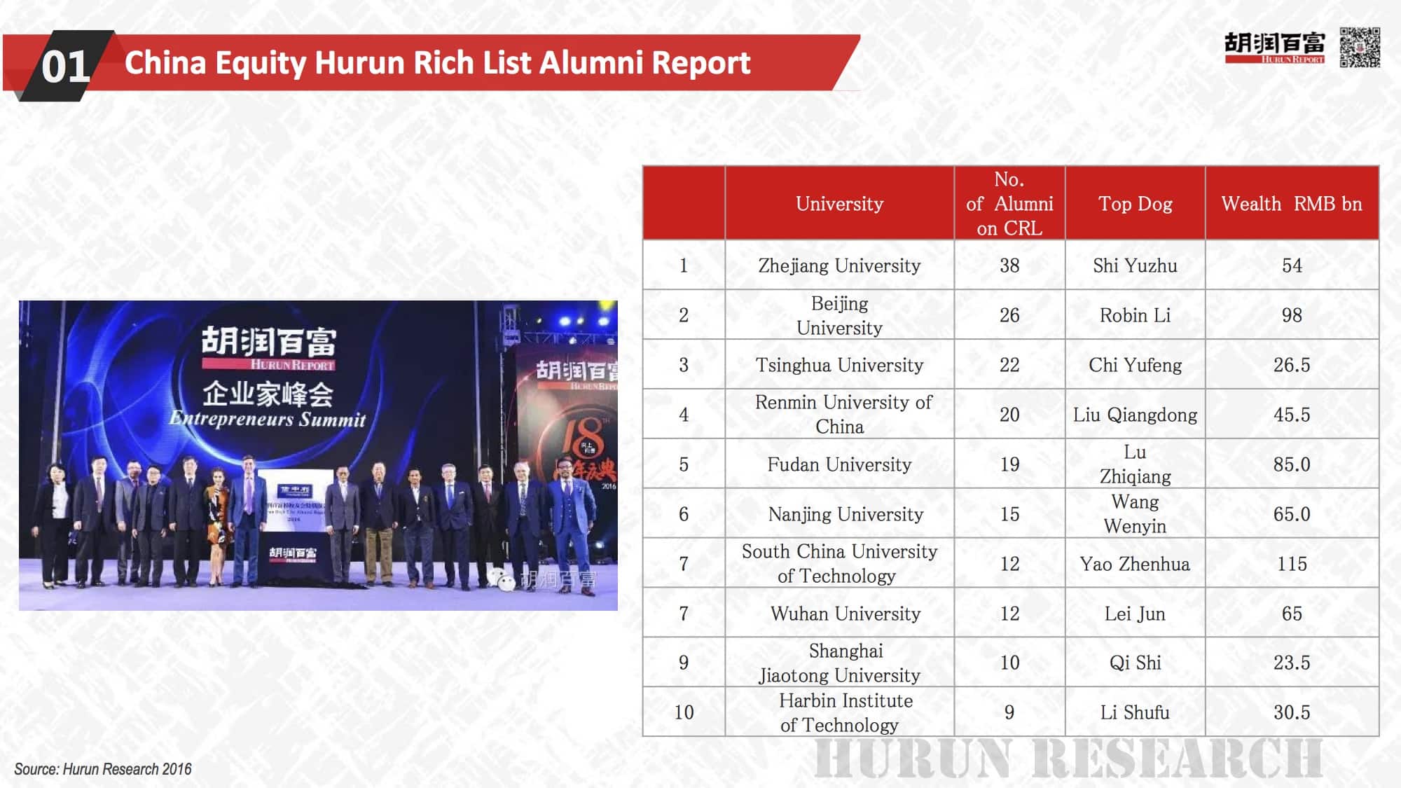 Hurun, which is the name of this venture, was established by Hoogewerf (a Durham alum) 20 years ago and has branched out into a range of other rankings including: