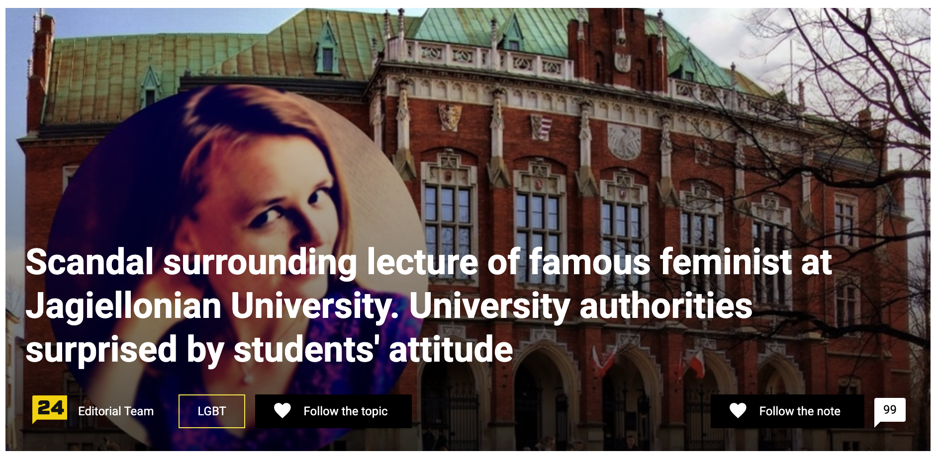 When inviting Dr. Magdalena Grzyb to give a lecture, we were not aware of the views she represents. We would also like to point out that we absolutely do not agree with the opinions she expresses, and we do not consent to any manifestations of transphobia in the university space.