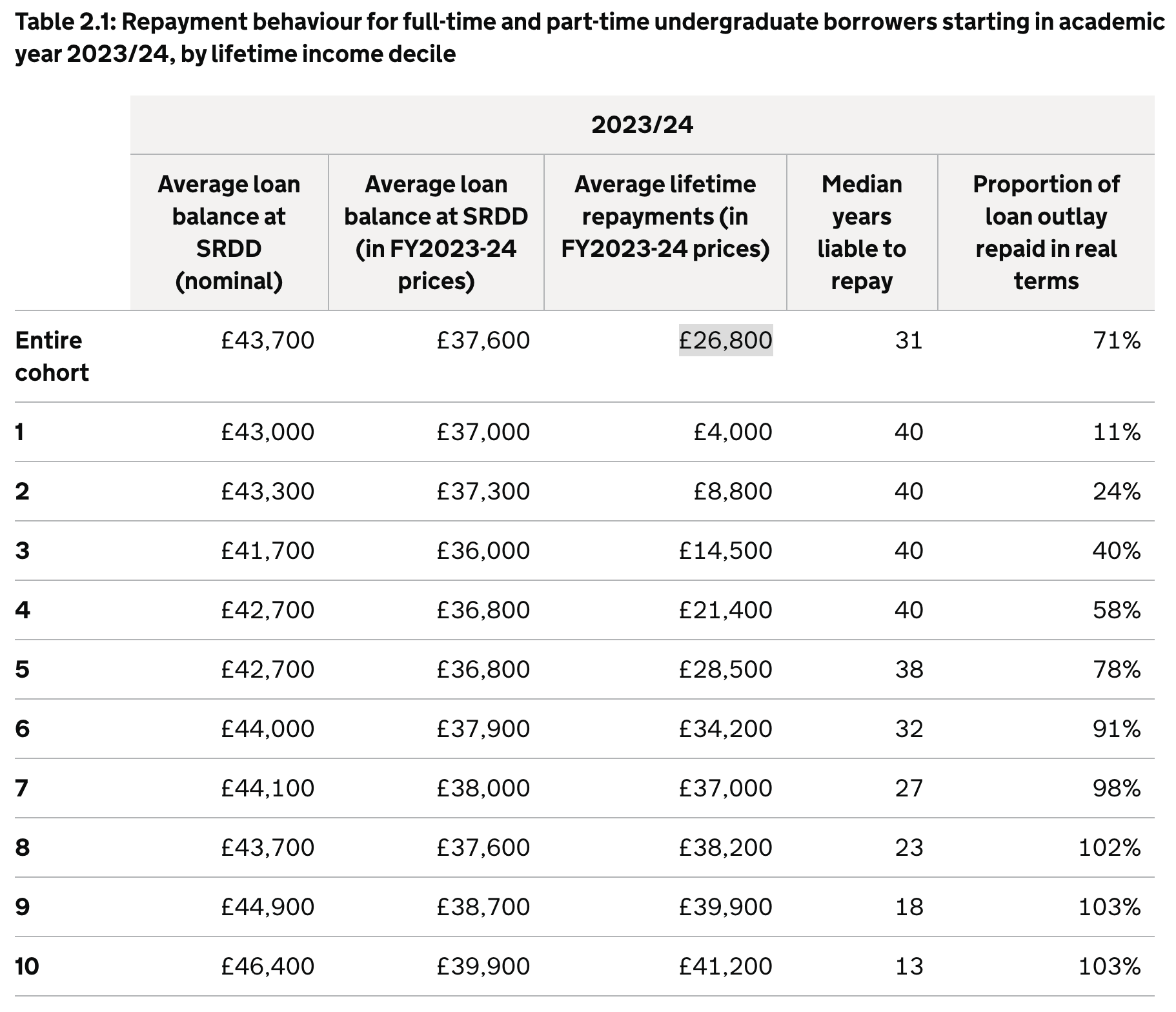 The debt and lifetime repayments suggest that the gulf is much narrower than it looks. If you’re a young student whose family earns £45,000, you’ll likely borrow £33,600 in maintenance loans over a four year degree (not accounting for entitlement increases over the four years) – and on average, you’ll repay almost all of that within your lifetime, because you’ve got a lower debt to clear than friends in England.