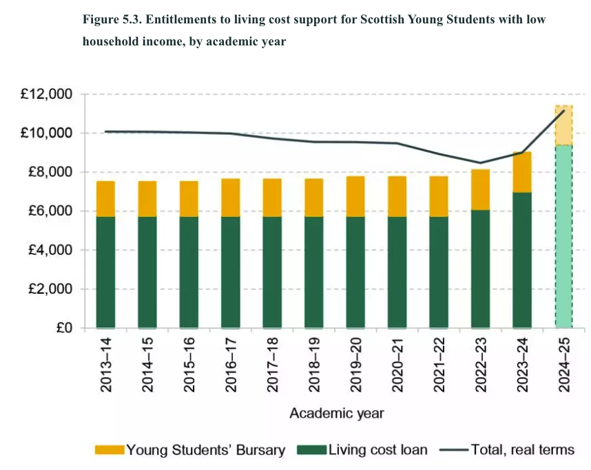 The £2,400 bump on maintenance was an SNP manifesto commitment – to deliver on the 2017 Student financial support review recommendation to take the total package to a level equivalent to the Scottish Government’s Living Wage.
