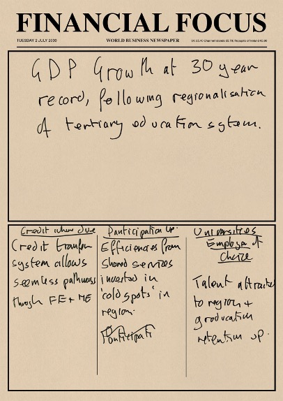 A speculative headline: “GDP growth at 30 year record, following reorganisation of tertiary education system.”
