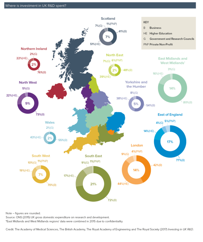 By all means, let us invest in industry and universities. The requirement for better funding of research in universities is made all the more acute by the threatened loss of Horizon2020 funding post-Brexit, a hugely important current source of funds. But we need better structures (and that includes basic infrastructure such as road and rail, digital connectivity as well as national research laboratories and near-market testing grounds). We also need to start with better education for all, wherever they live. It isn’t sufficient for pockets in the south to thrive while other areas have bad schools, inadequate further education, and universities with high dropout rates. Attention is urgently needed if the value of the increased R&D spending pledged by all parties is to deliver on its promise.