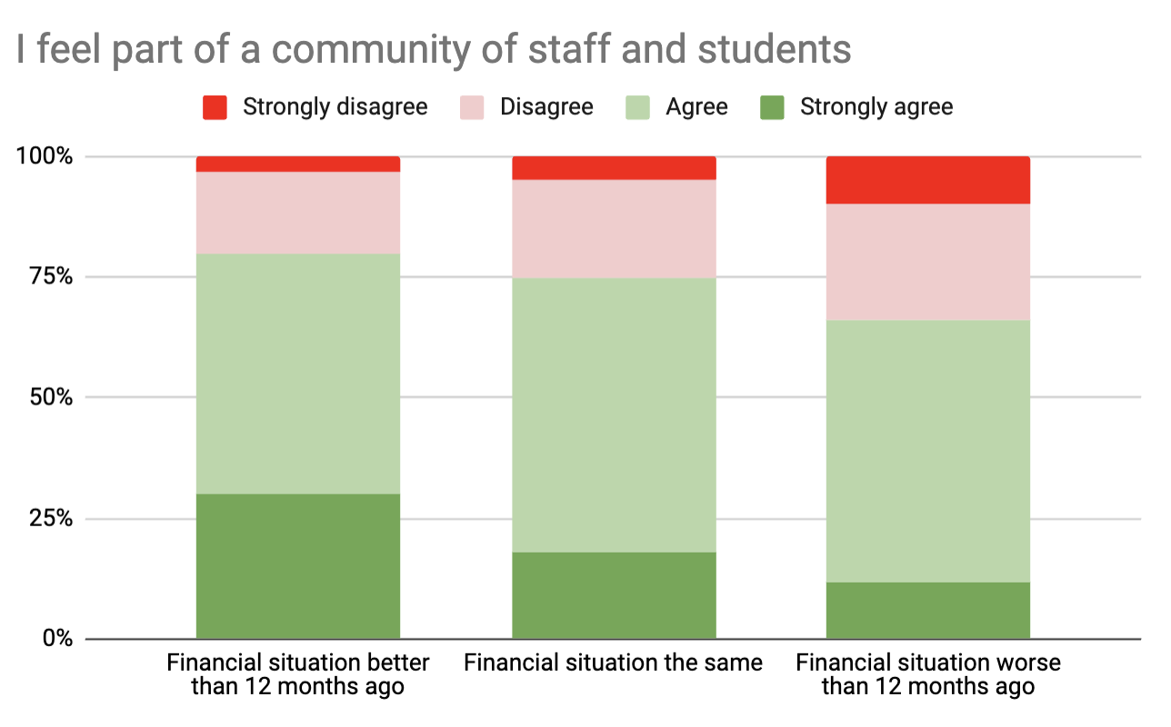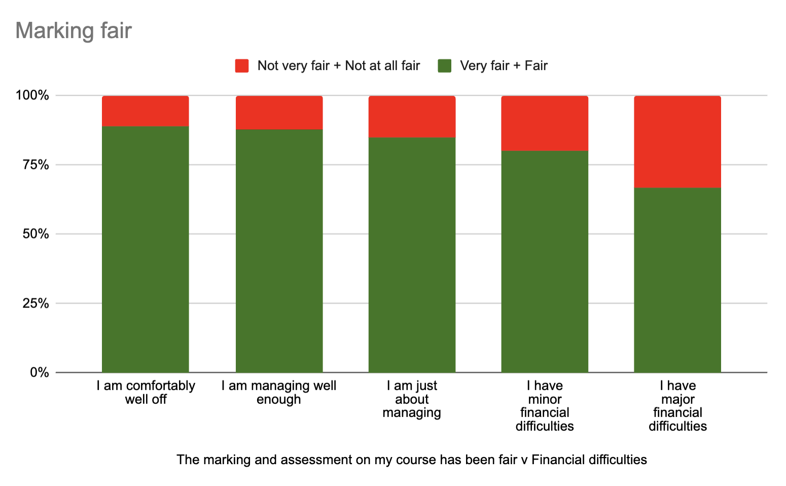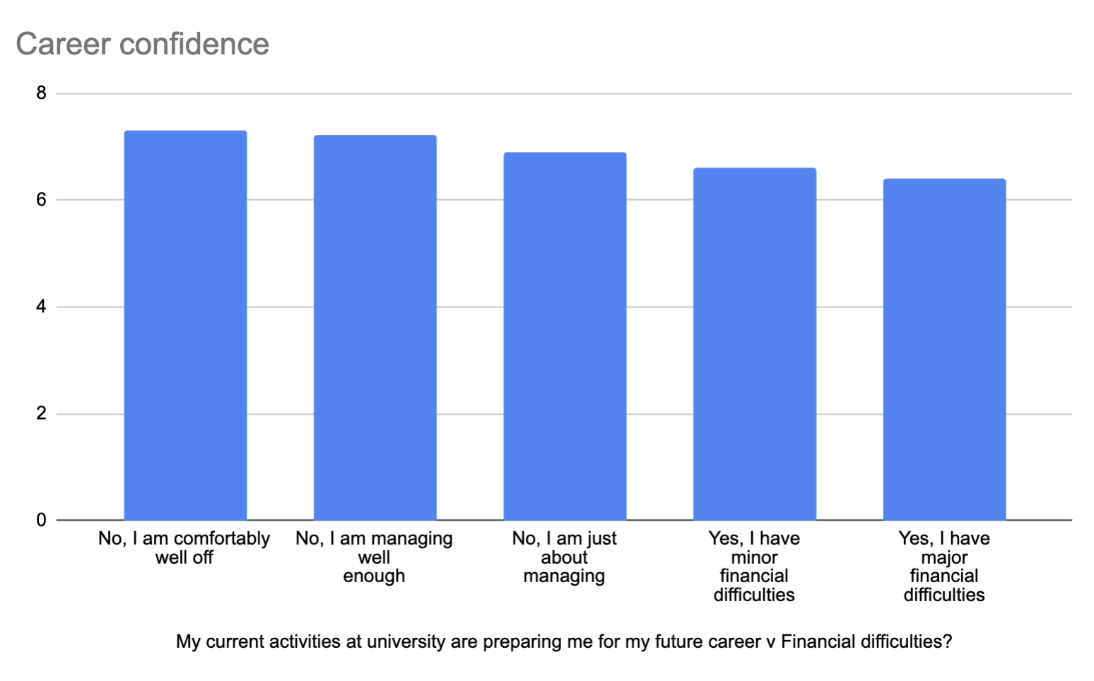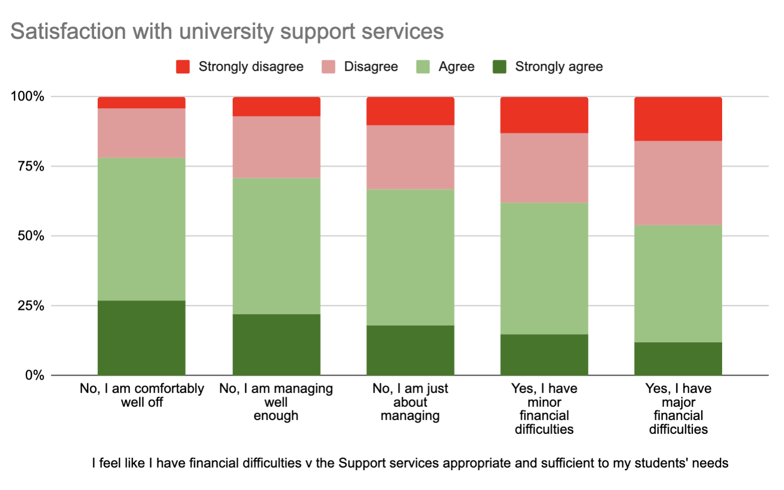 Financial position – perhaps inevitably – then also correlates with students’ satisfaction with university support services: