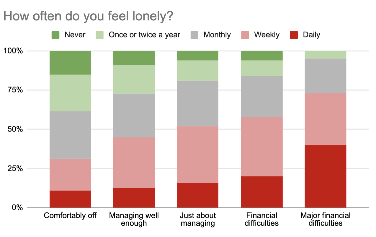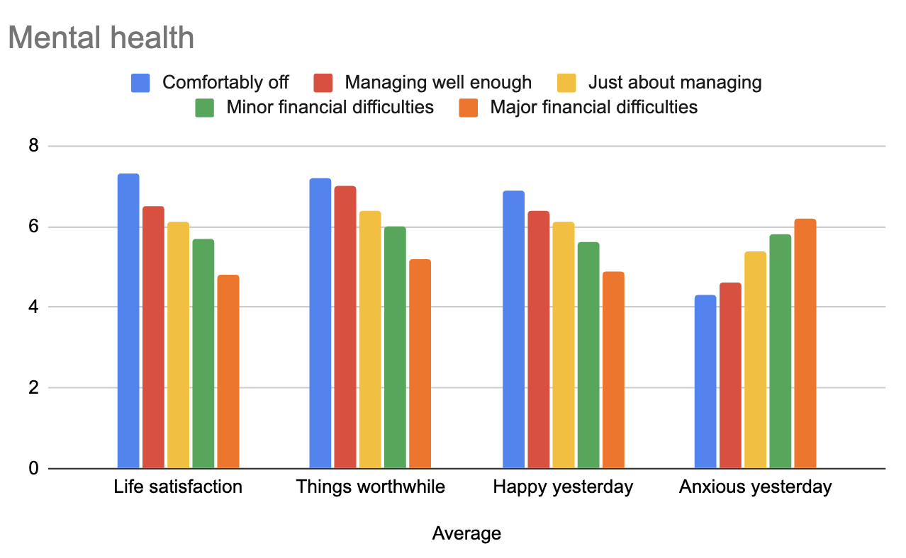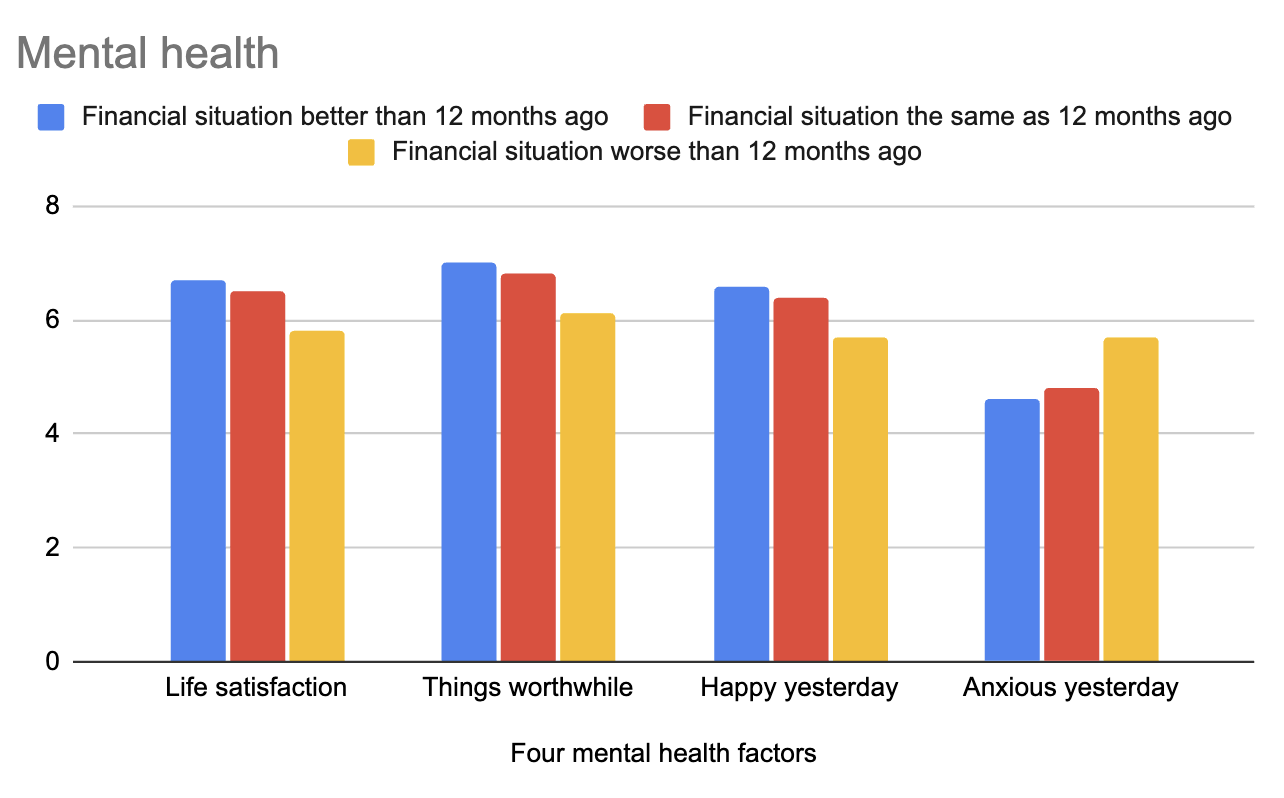 We can use the same categories to interrogate the relationship between financial position and mental health: