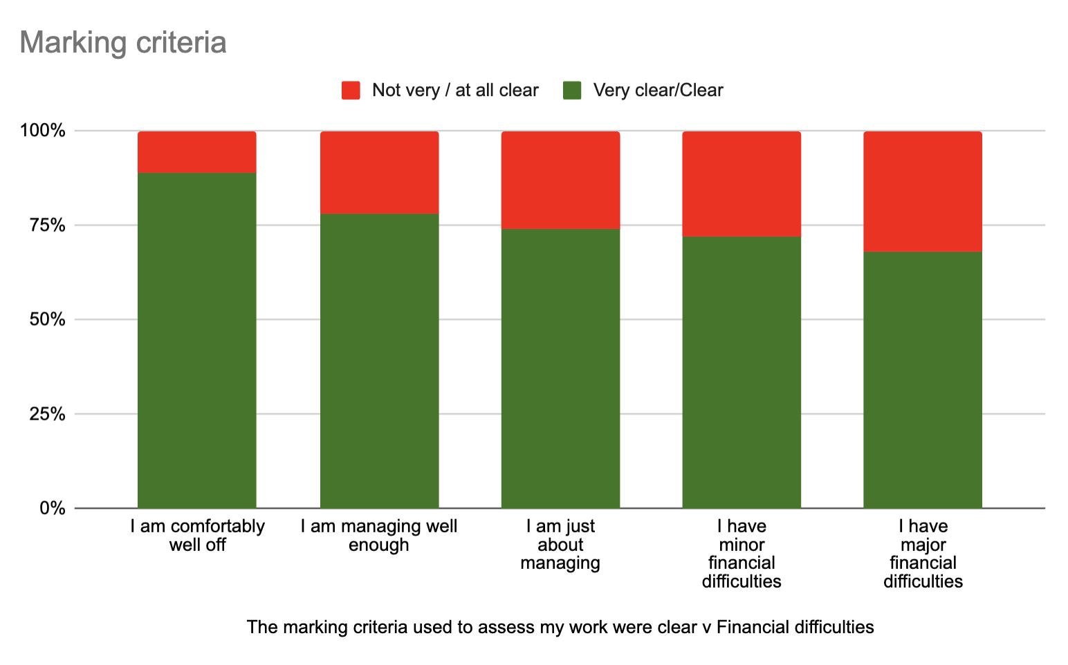 There are also significant differences on other NSS questions – like whether marking criteria were clear: