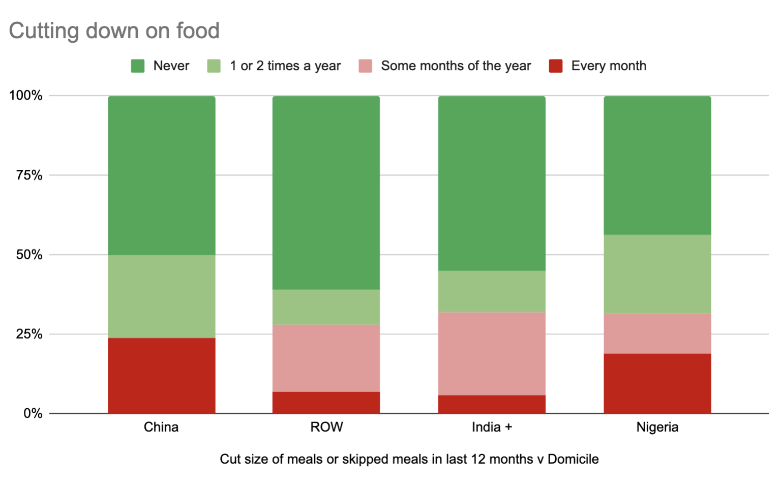 If we look at who said they’d struggled with concentration over the past year due to lack of food, the differences are significant: